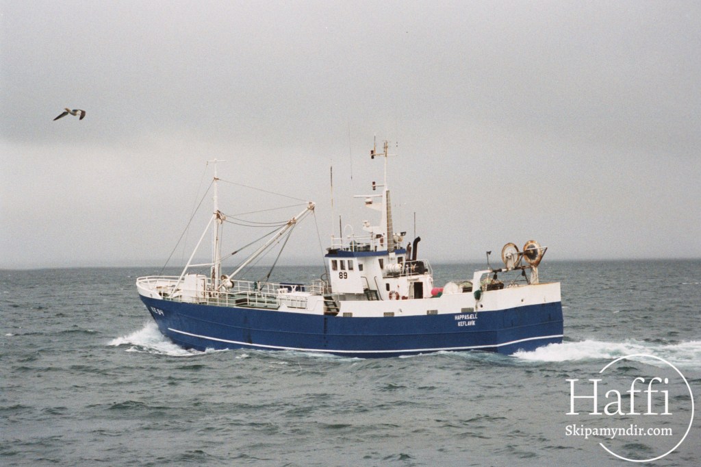 Happasæll KE 94 lætur hér úr höfn í Keflavík en það var hans heimahöfn um árabil.