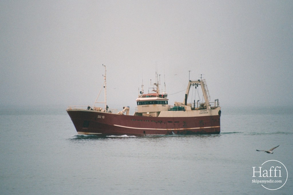 Votaberg SU 10 frá Eskifirði kemur hér til hafnar á Húsavík eftir úthafsrækjuveiðitúr en skipið var gert út af Eskju á Eskifirði.