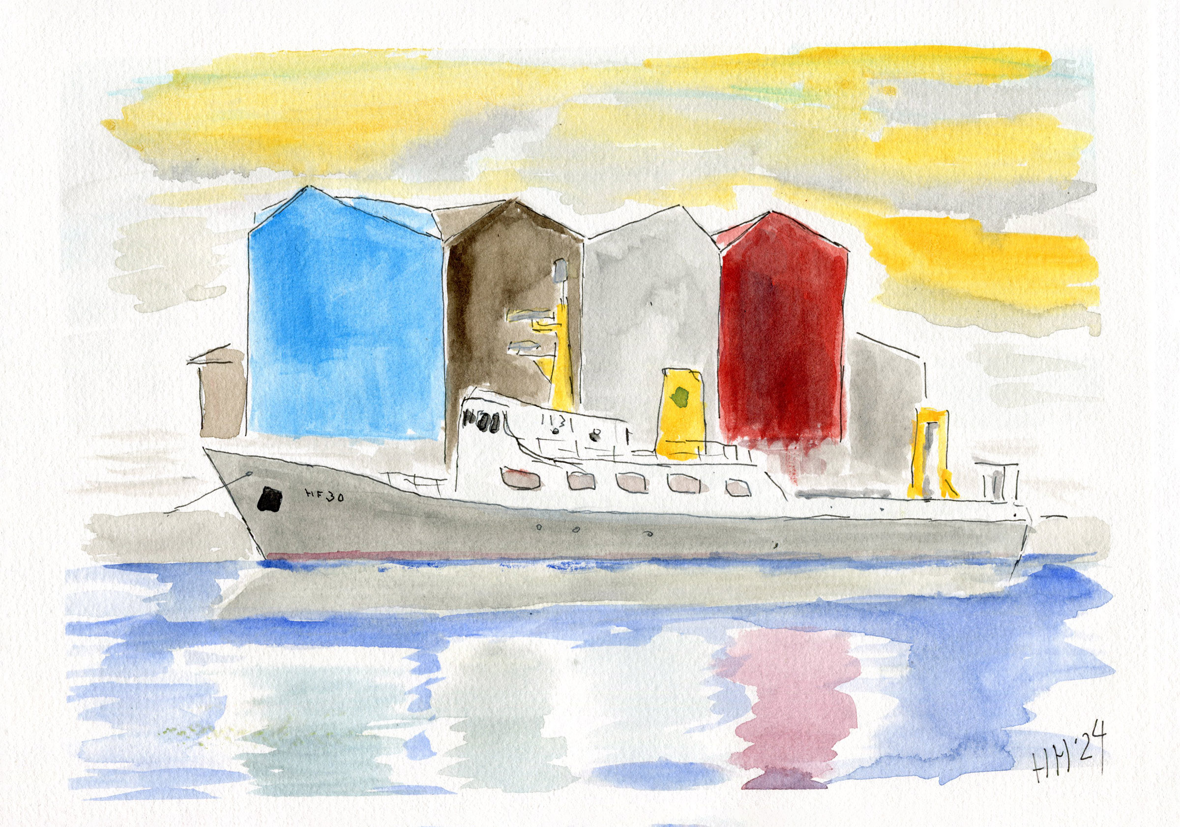 Með þessari færslu fylgir vatnslitamynd af Bjarna Sæm en hér má skoða myndasyrpu af skipinu.