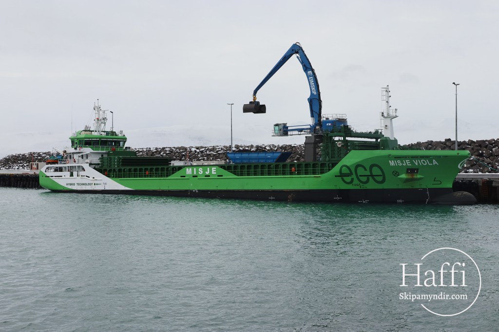 Flutningaskipið Misje Viola kom til Húsavíkur í morgun og lagðist að Bökugarðinum.