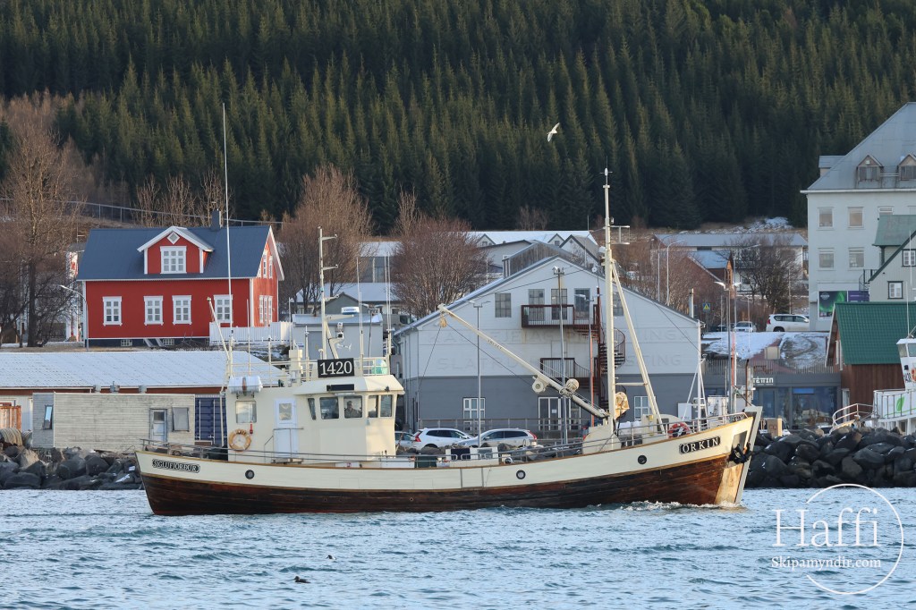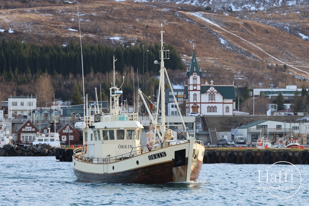 Örkin fór niður úr Húsavíkurslipp í fyrradag nýskveruð og fín og stefnan sett á heimstím til Siglufjarðar.