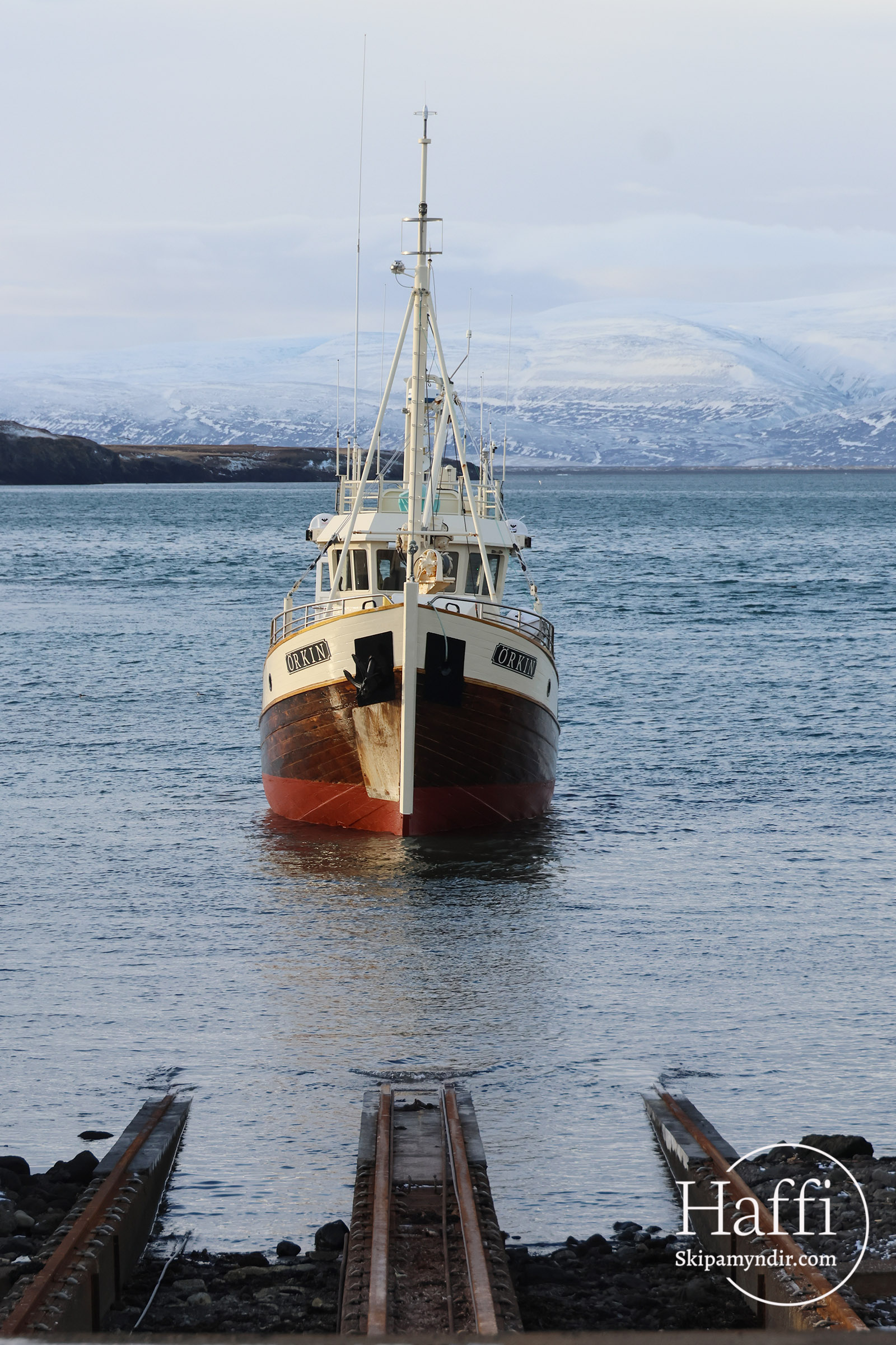 Örkin fór niður úr Húsavíkurslipp í fyrradag nýskveruð og fín og stefnan sett á heimstím til Siglufjarðar.