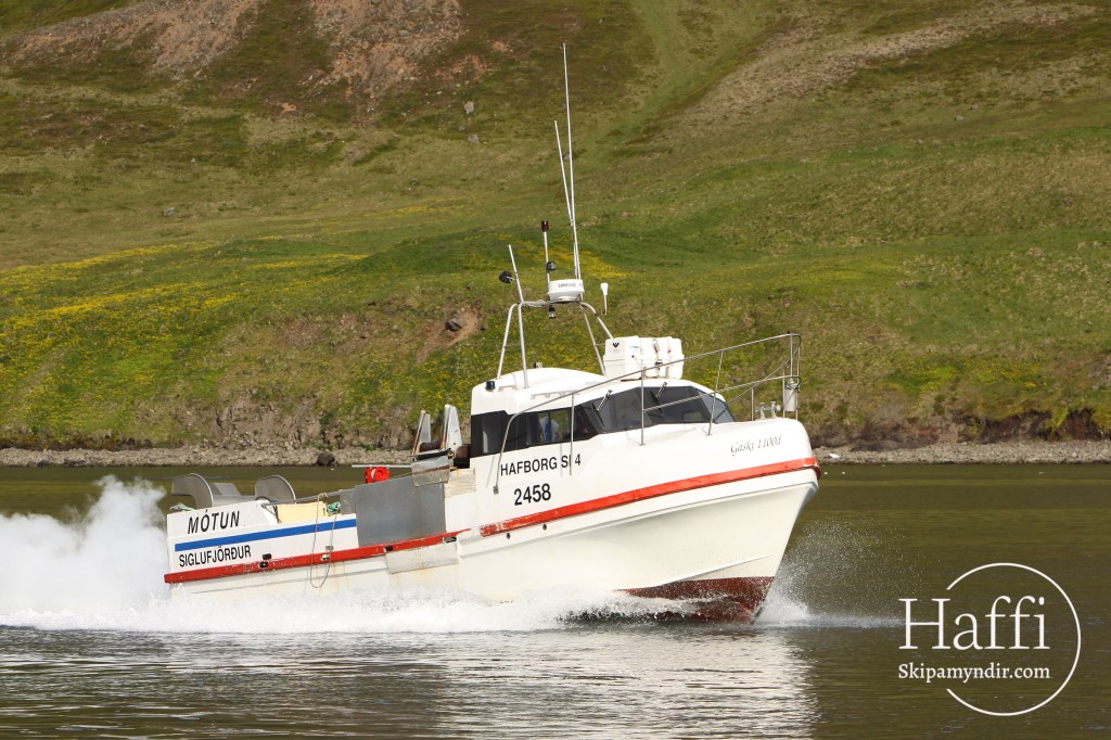 Hafborg SI 4 kemur hér að landi á Siglufirði sumarið 2012 en báturinn er af Gáskagerð frá Bátasmiðjunni Mótun.