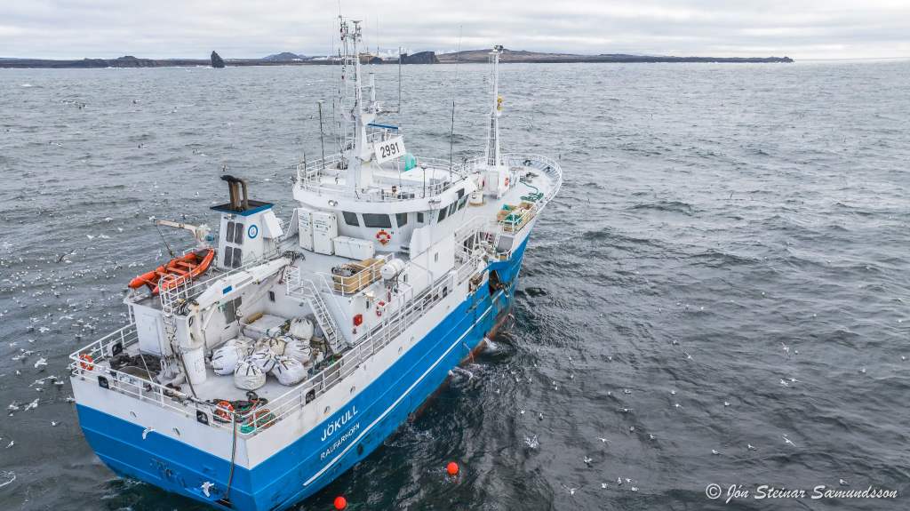 Jón Steinar tók þessar myndir í dag af Jökli ÞH 299 þar sem hann var að draga netin í Reykjanesröstinni.