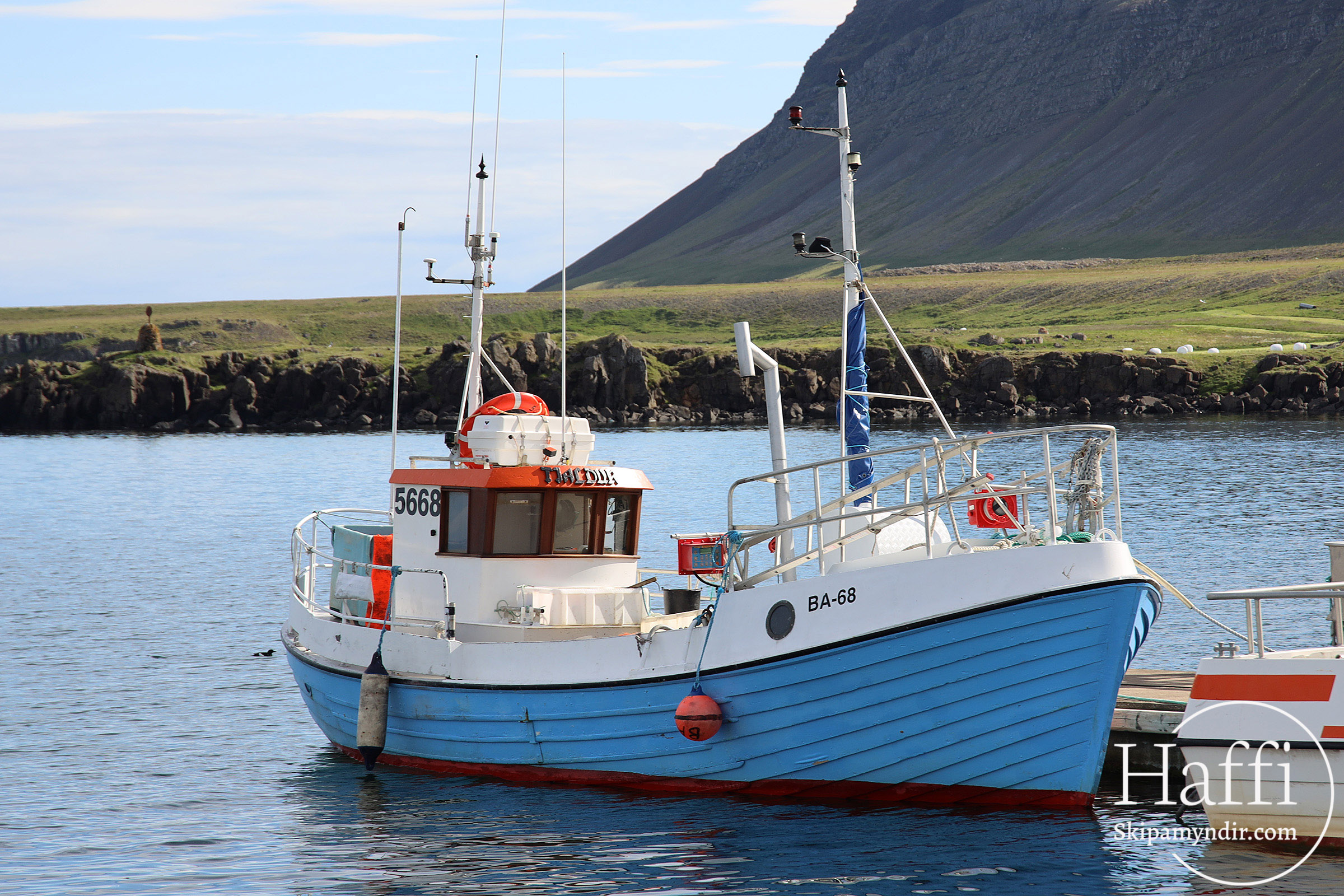 Frá árinu 1980 hefur báturinn heitið Tjaldur BA 68 með heimahöfn á Brjánslæk á Barðaströnd en þar var myndin tekin.