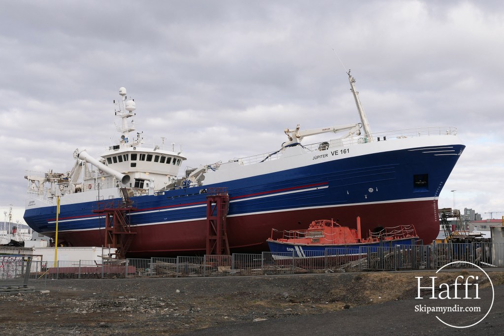 Júpíter VE 161 sem hér sést í slipp í Reykjavík hét áður Jóna Eðvalds SF 200 og er í eigu Horneyjar ehf., félags sem er í sameiginlegri eigu Skinneyjar-Þinganess og Ísfélagsins.