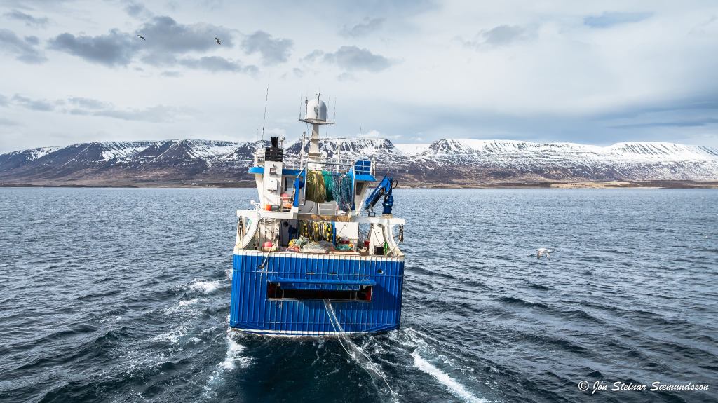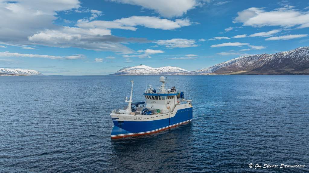 Jón Steinar náði þesum myndum af Hafborginni EA 152 þar sem hún var að draga netin á Eyjafirði.