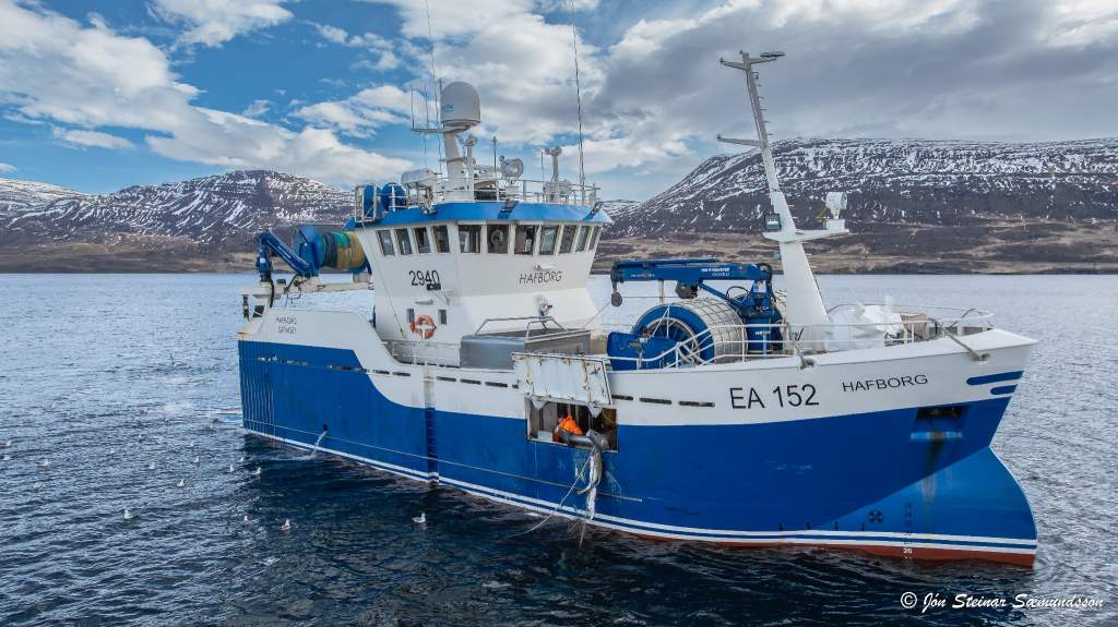 Hafborg var við netaveiðar inni á Eyjafirði í dag en hún stundar þessa dagana vísindaveiðar á vegum Hafró eða svokallað netarall.