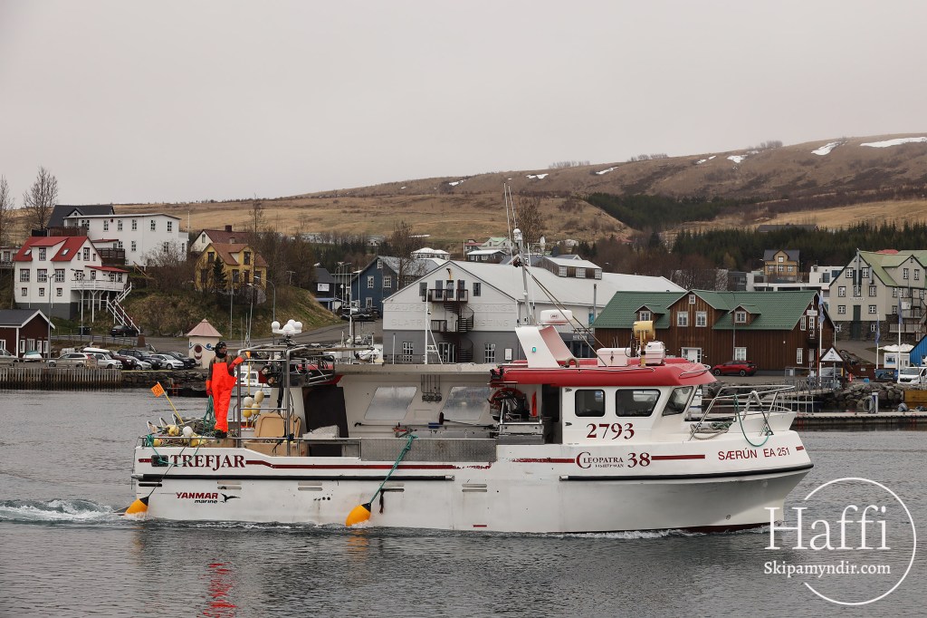 Grásleppubáturinn Særún EA 251 kemur hér að landi á Húsavík í gær en það er GPG Seafood ehf. sem gerir bátinn út.