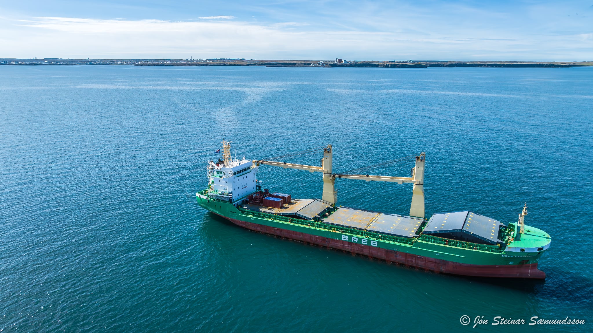 Flutningaskipið Breb Countess hefur undanfarna daga legið undan landi við Keflavík og beðið vekefna.