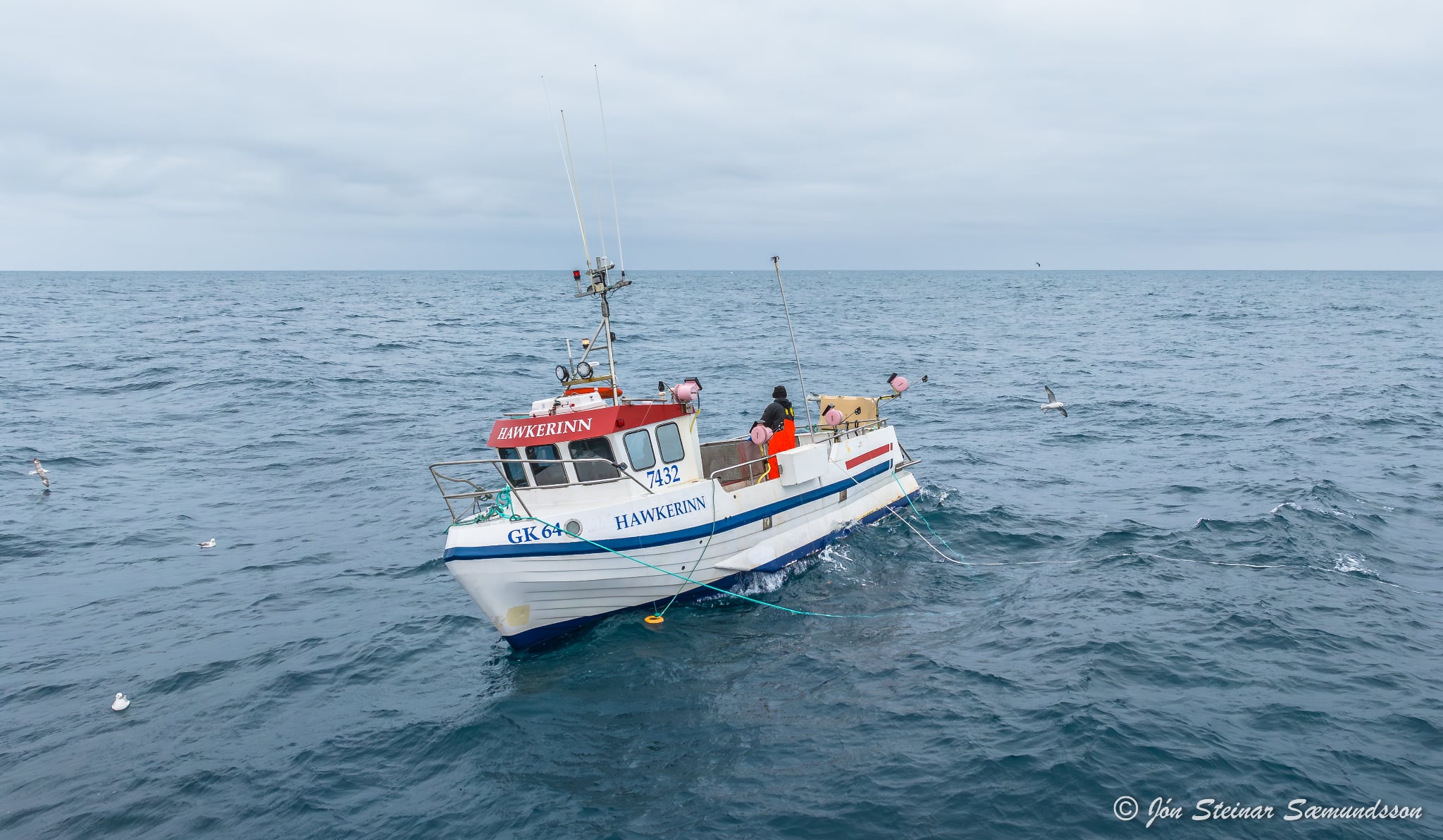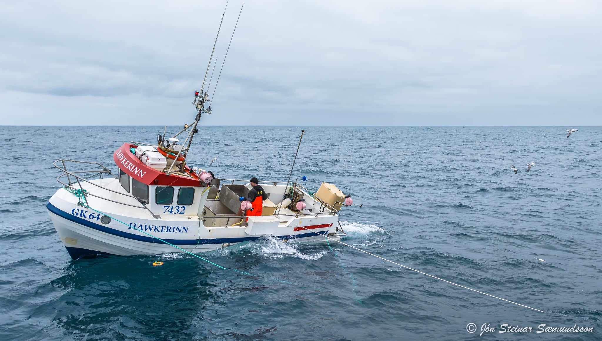 Hér lætur Hawkerinn GK 64 reka á skakinu úti fyrir Hópsnesinu á dögunum en báturinn er með heimahöfn í Garðinum.