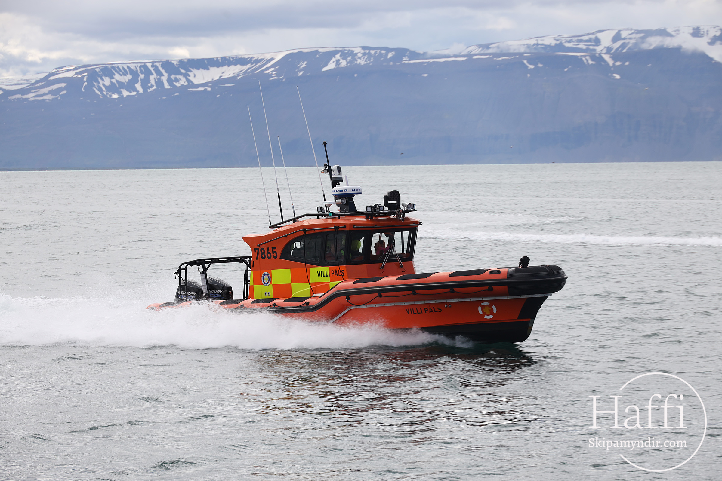 Hér er björgunarskipið Villi Páls í skemmtisglingu í gær, Sjómannadaginn en hann er í eigu Björgunarsveitarinnar Garðars á Húsavík.