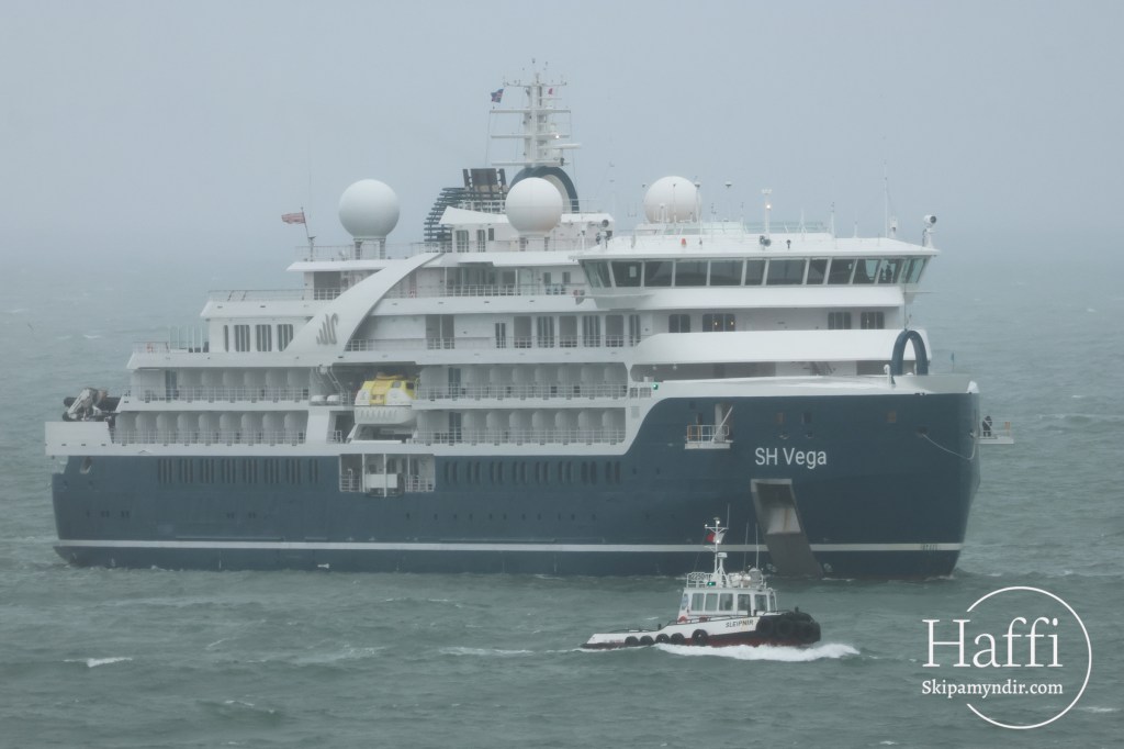 Skemmtiferðaskipið SH Vega kom til Húsavíkur nú undir kvöld og lagðist að Bökugarði.