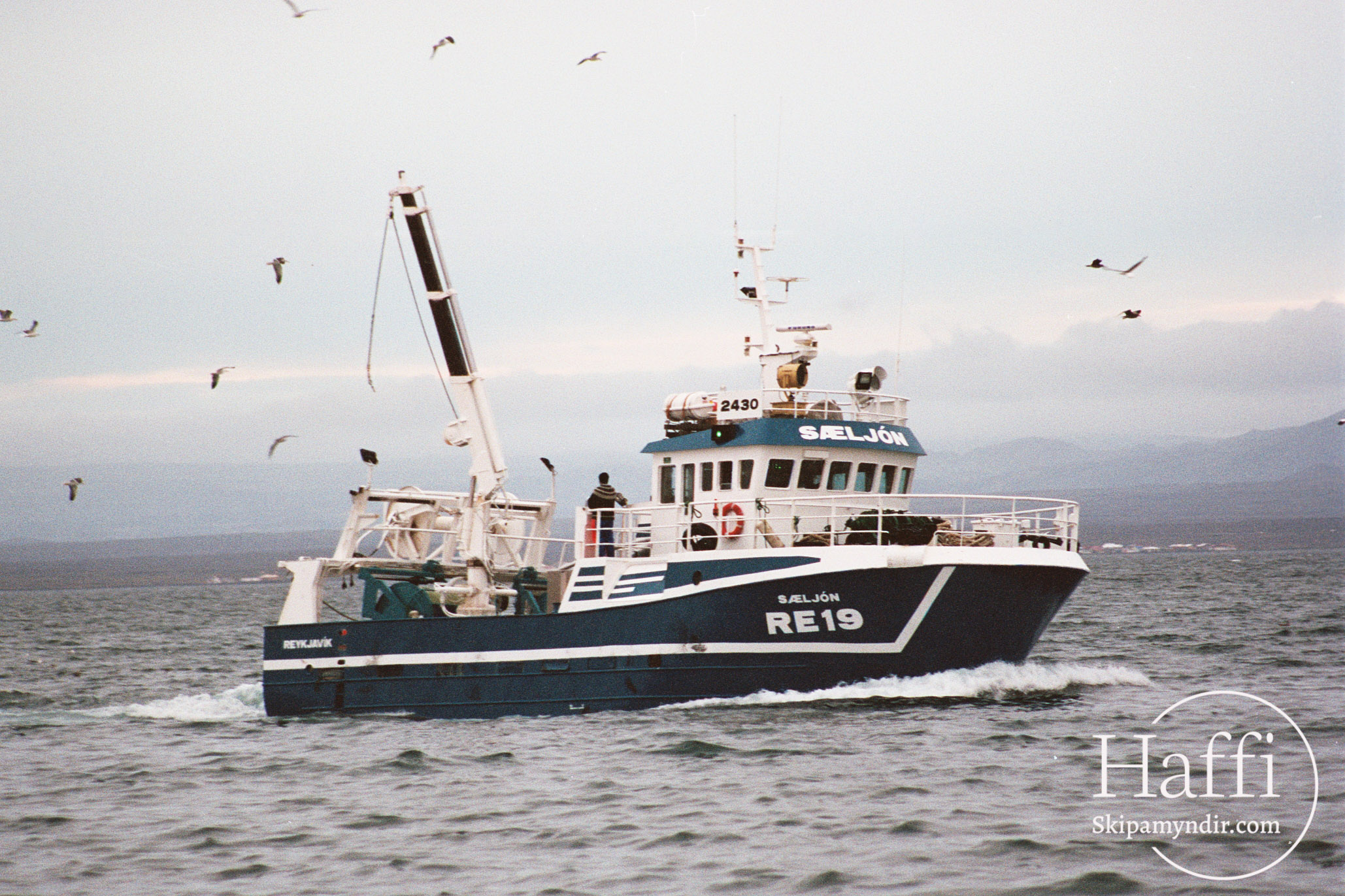 Sæljón RE 19 kemur hér til hafnar í Keflavík eitt haustið eftir dragnótaróður í Bugtinni.