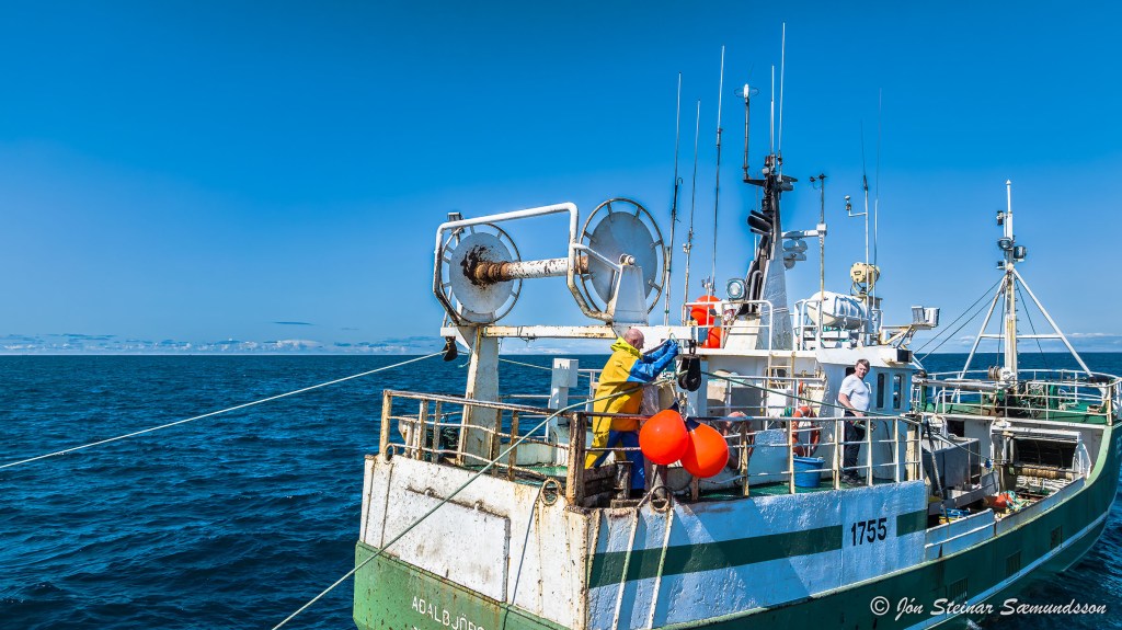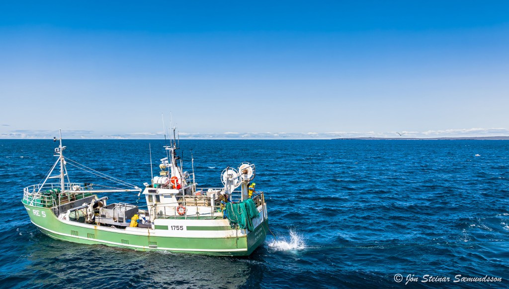 Jón Steinar myndaði Aðlbjörgu RE 5 þar sem hún var við dragnótaveiðar í gær. Vestur á Víkum eins og ljósmyndarinn orðaði það.