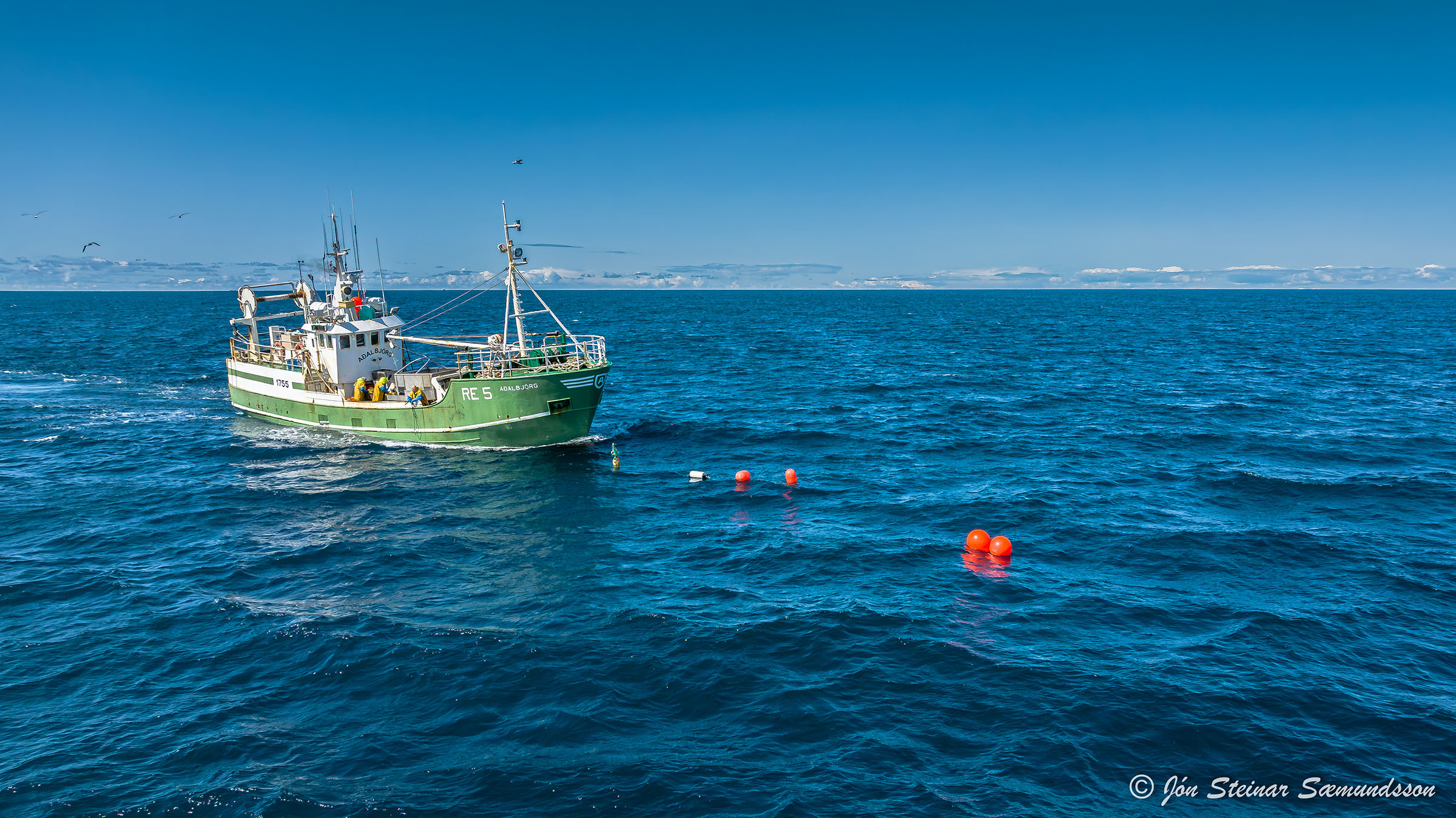 Jón Steinar myndaði Aðlbjörgu RE 5 þar sem hún var við dragnótaveiðar í gær. Vestur á Víkum eins og ljósmyndarinn orðaði það.