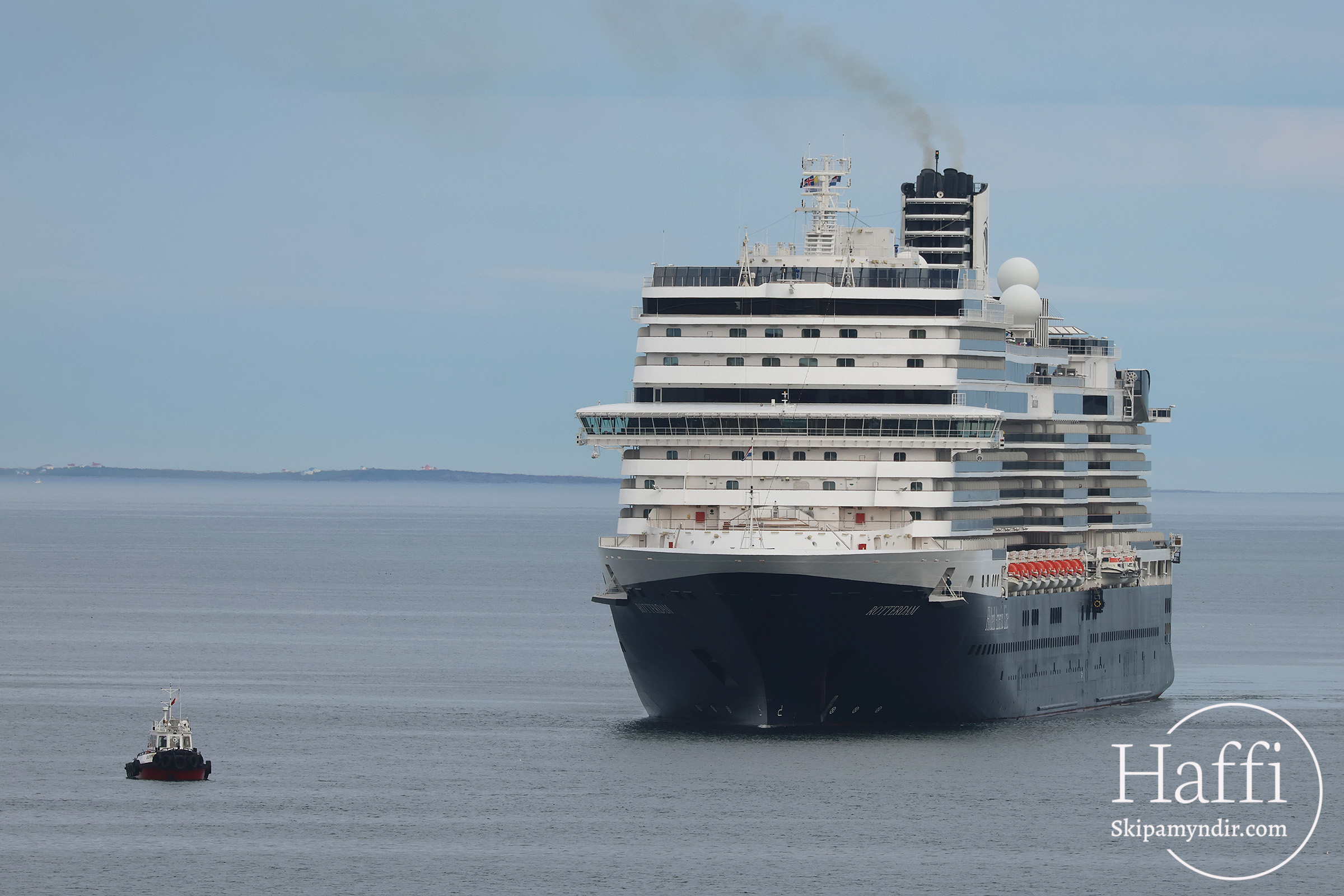 Farþegaskipið Rotterdam sigldi inn Skjálfandann í morgun og lagðist við akkeri framundan Húsavík.