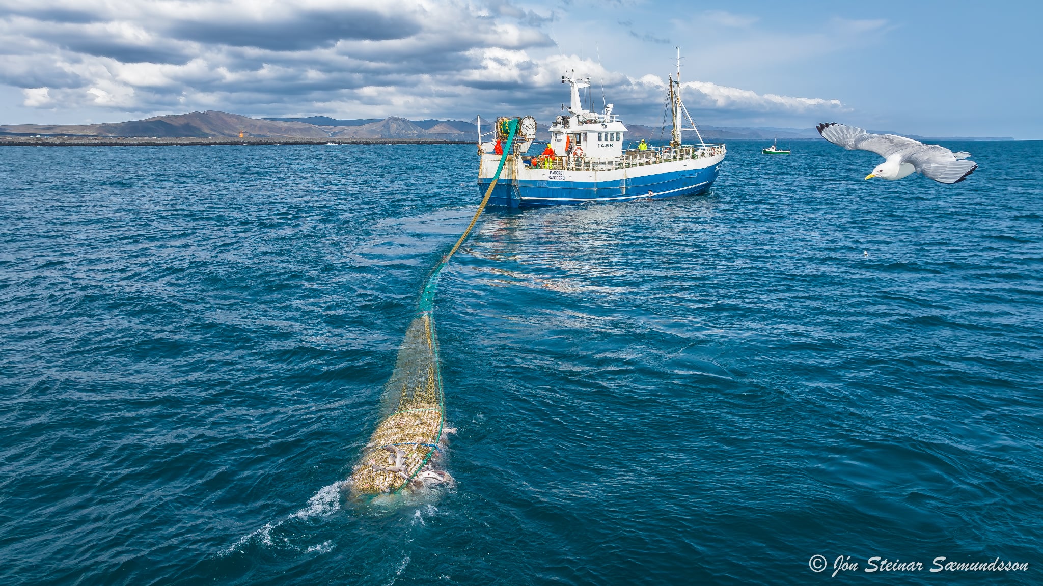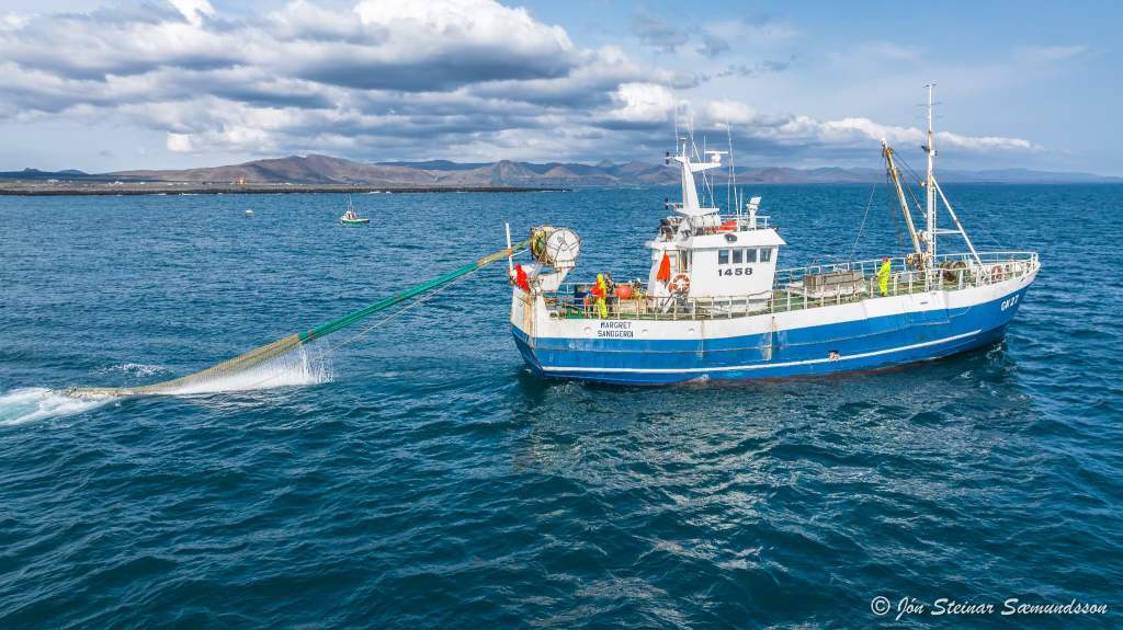 Jón Steinar tók þessar myndir af dragnótabátnum Margréti GK 27 rétt fyrir utan Grindavík í byrjun vikunnar.