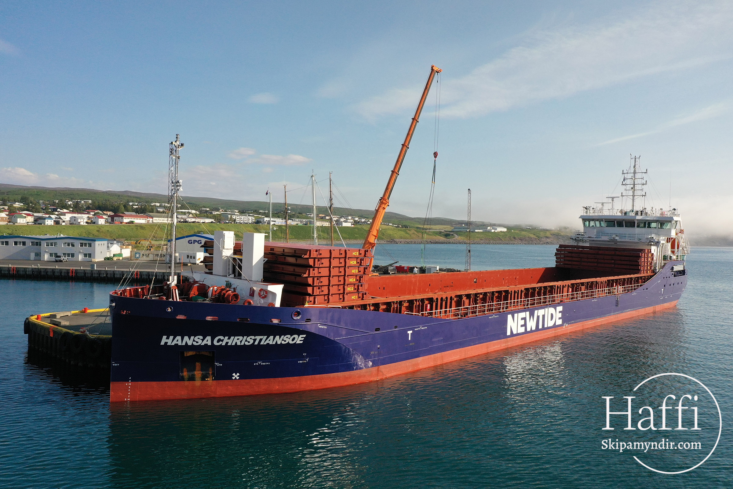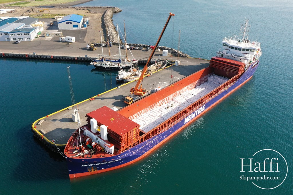 Flutningaskipið Hansa Christiansoe er á Húsavík í dag þar sem það losar saltfarm.
