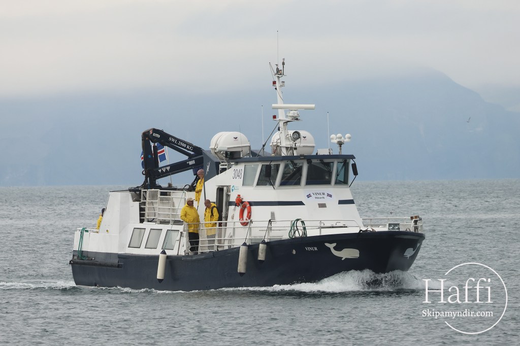 Vinur er rúmlega 20 metrar að lengd og tekur 48 farþega. Báturinn var úr smíðaður úr plasti árið 1980.