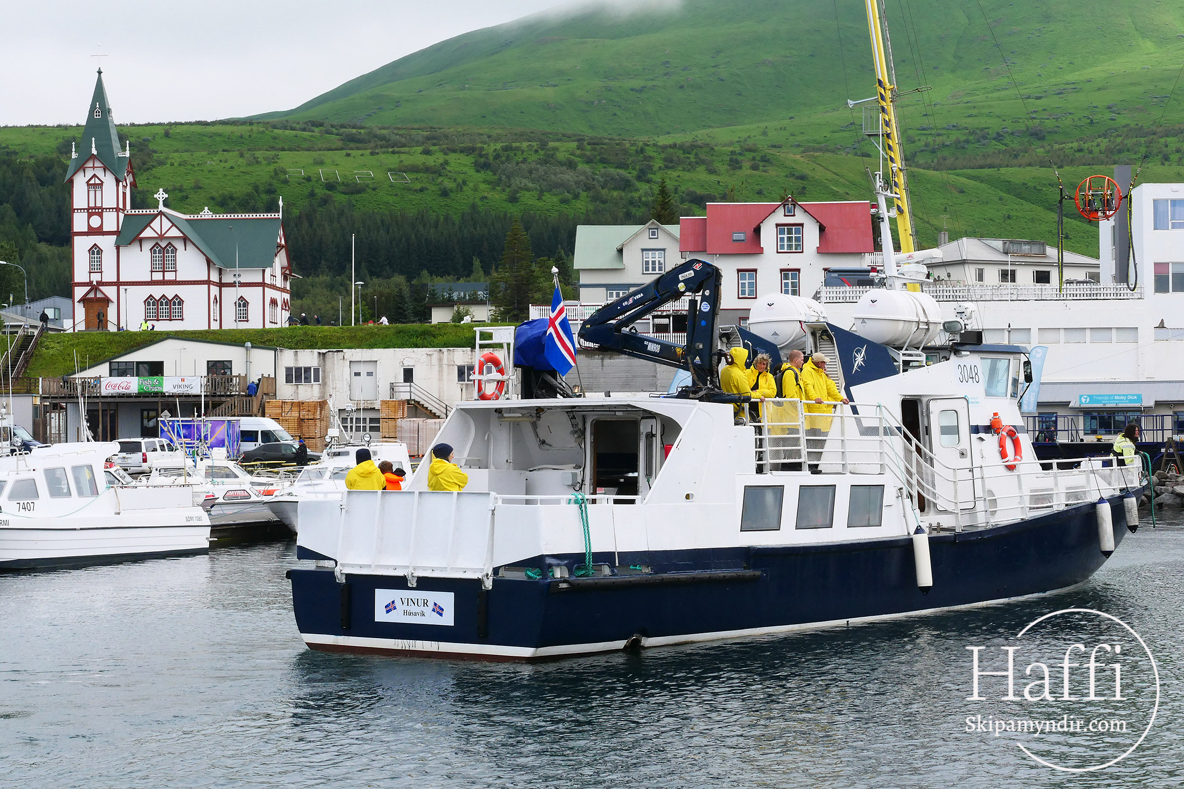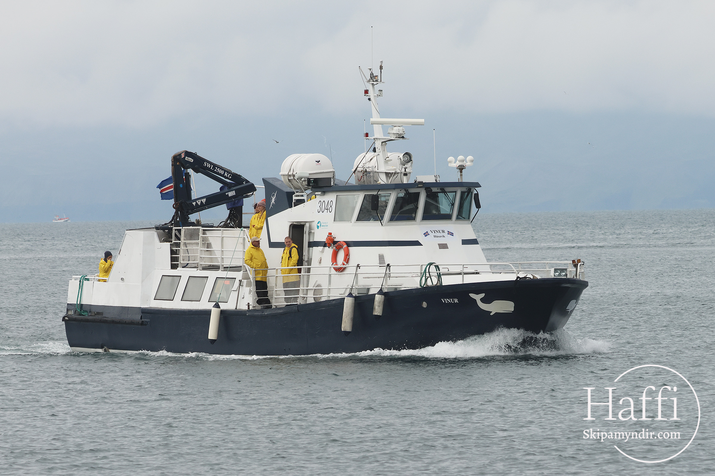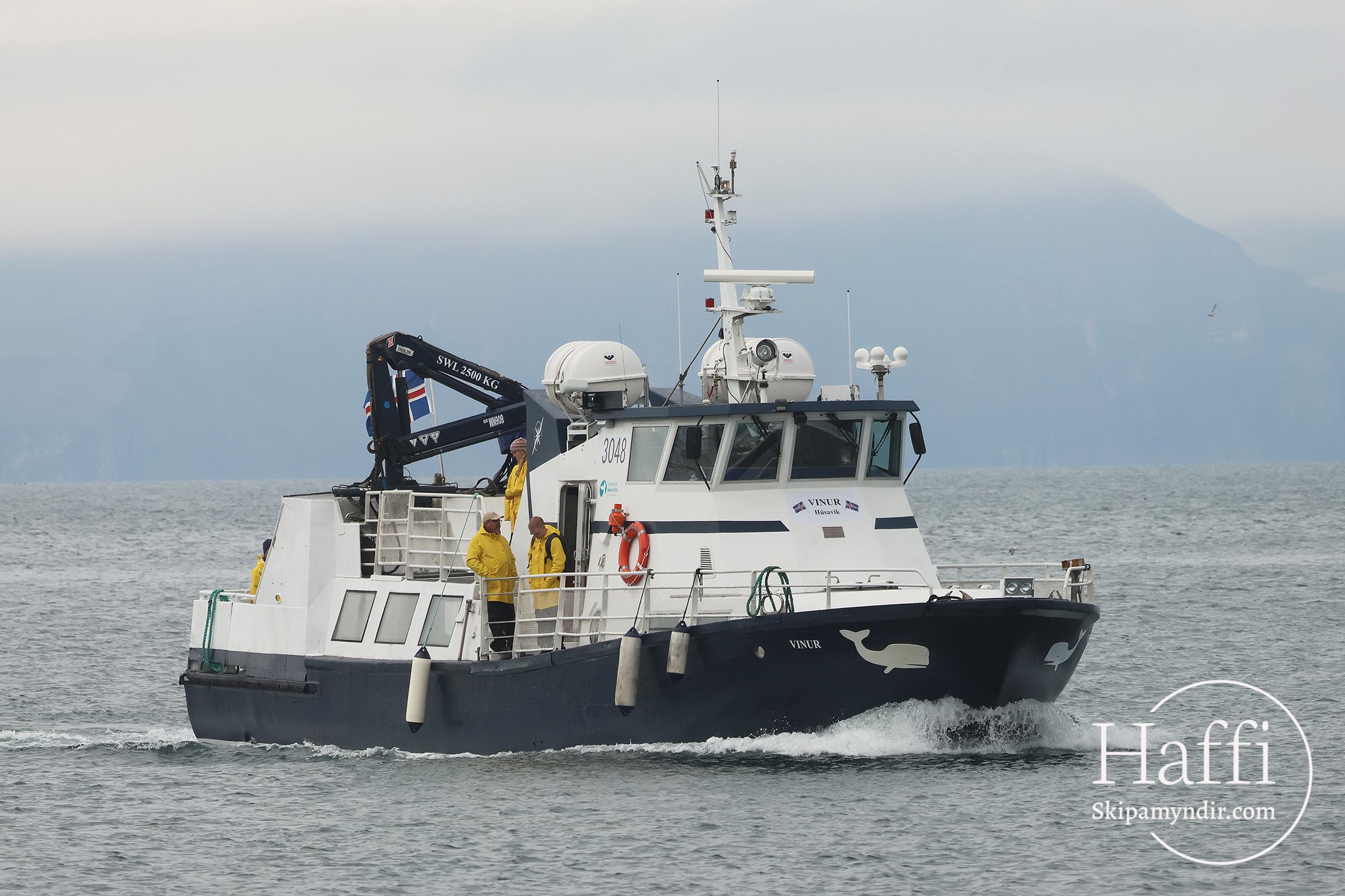 Hvalaskoðunarbáturinn Vinur sem Sjóferðir Arnars á Húsavík keypti frá Noregi fyrr á árinu hefur hafið siglingar á Skjálfanda.