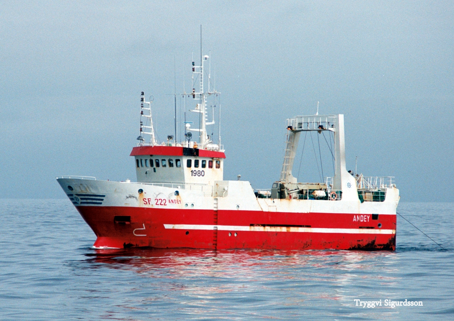 Andey SF 222 er hér á toginu um árið en upphaflega var Andey SU 210með heimahöfn á Breiðdalsvík.