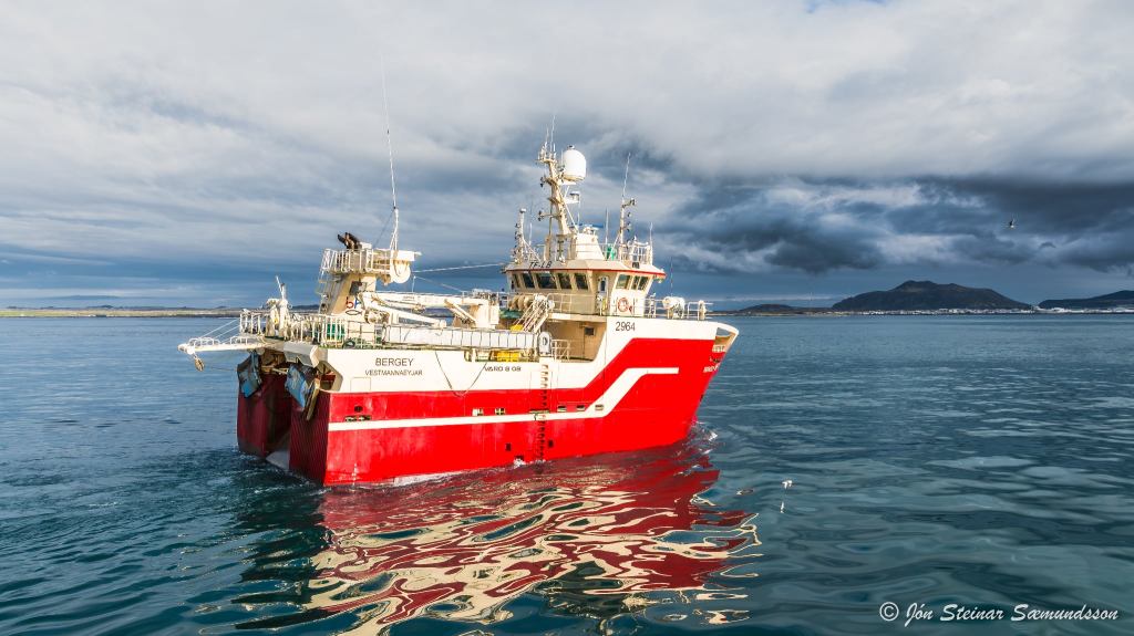 Jón Steinar tók þessar myndir af Bergey VE 44 þar sem hún lónaði fyrir utan Grindavík í gærmorgun.