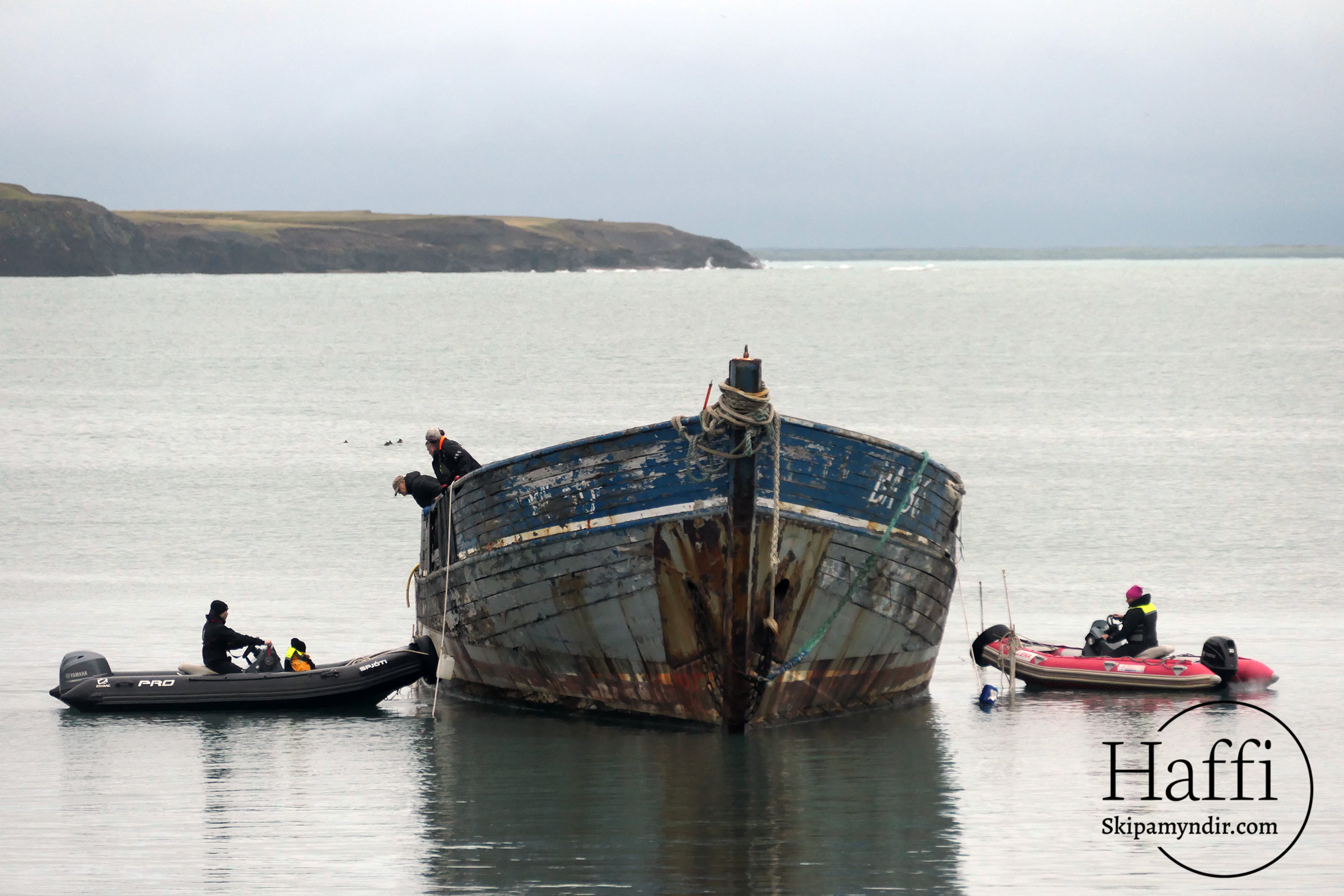 María Júlía er í þessum skrifuðu orðum að verða kominn upp í slipp á Húsavík en hún fór í sleðann á kvöldflóðinu.