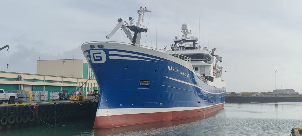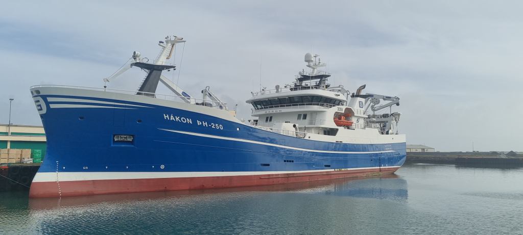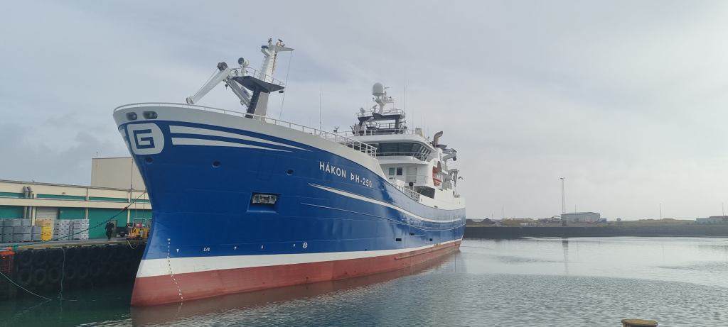 Hér gefur að líta Hákon ÞH 250 við bryggju á Hornafirði en hann landar þar síld að ég held.