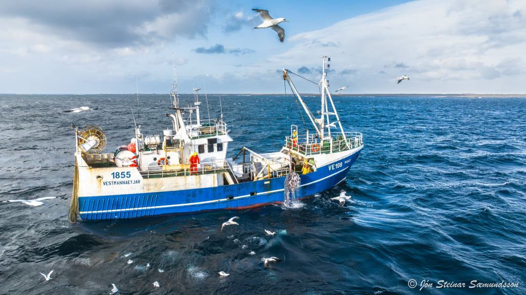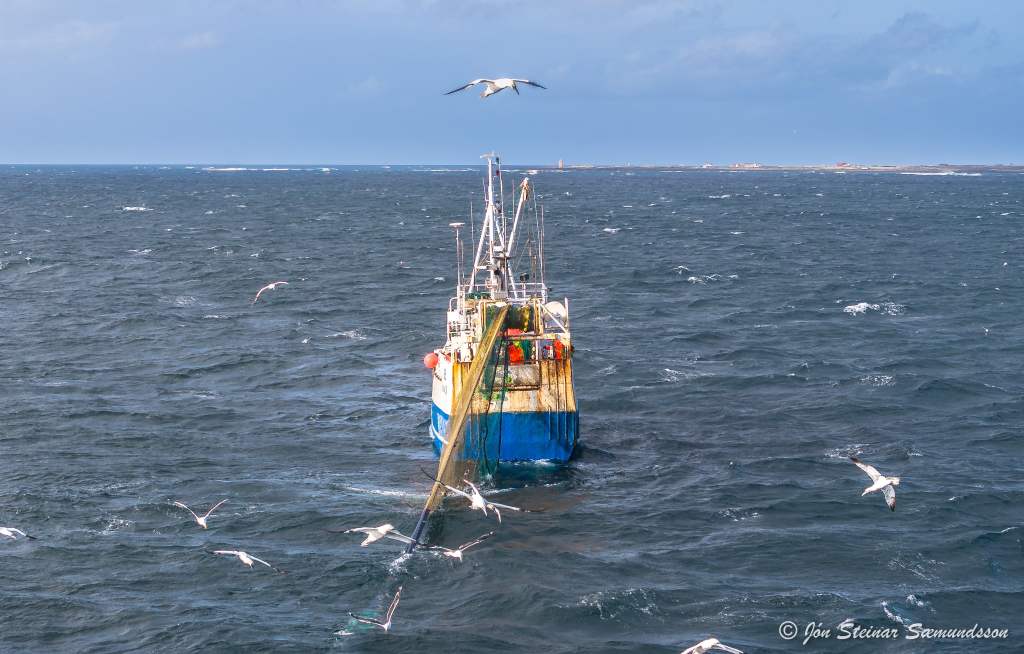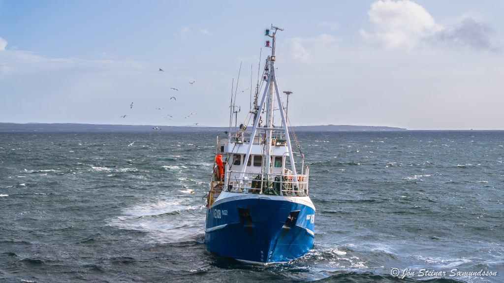 Jón Steinar tók þessar myndir í gær af dragnótabátnum Maggý VE 108 þar sem hann var við veiðar suður af Stafnesi.