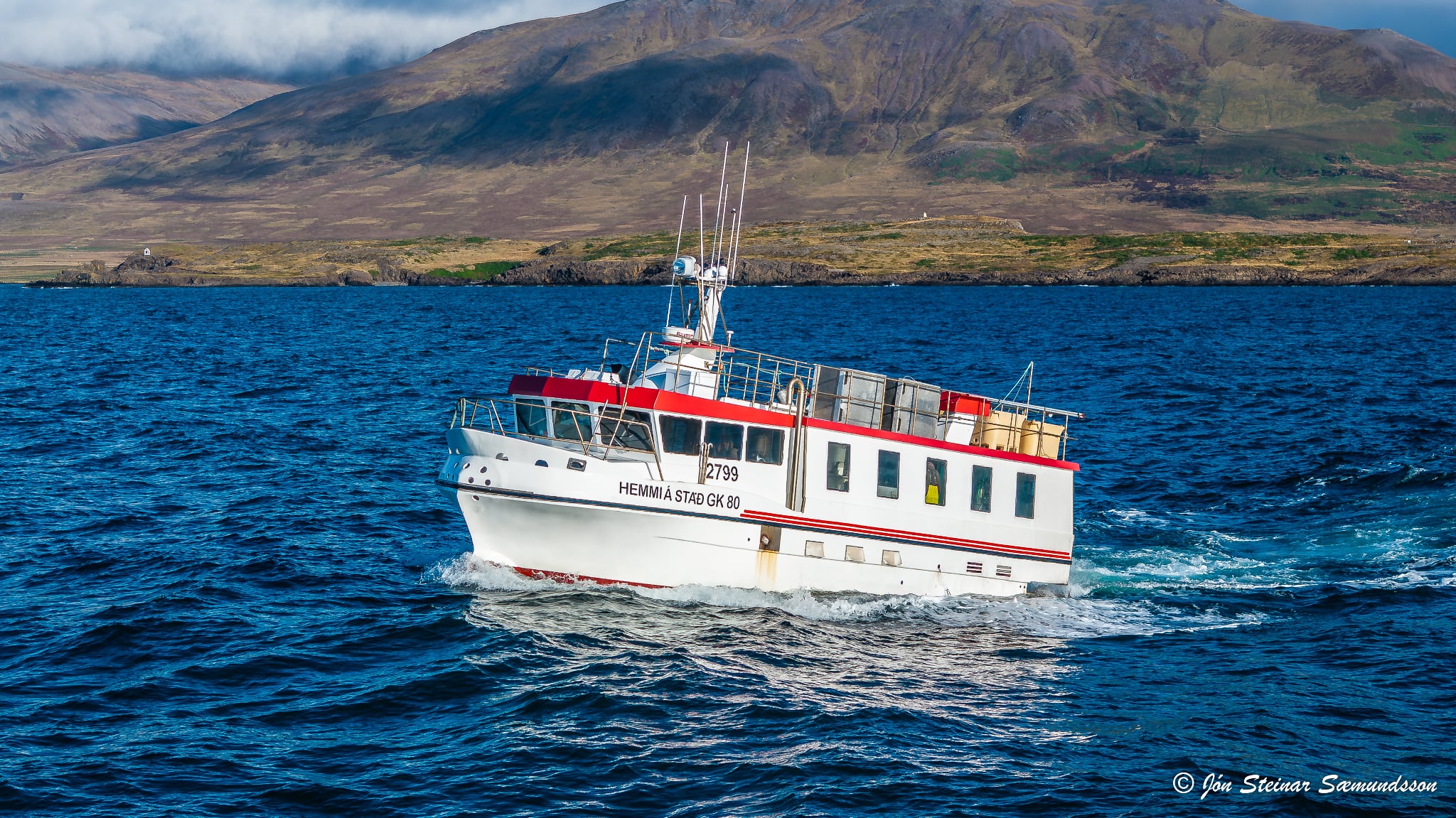 Jón Steinar tók þessar myndir af línubátnum Hemma á Stað GK 80 í gær þar sem báturinn var á útleið frá Skagaströnd.