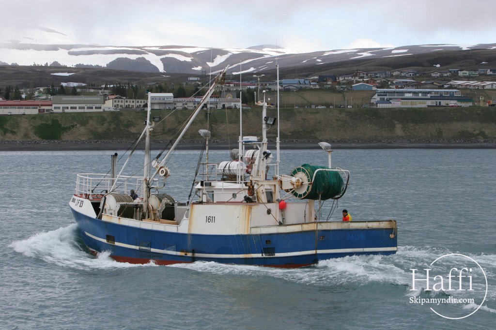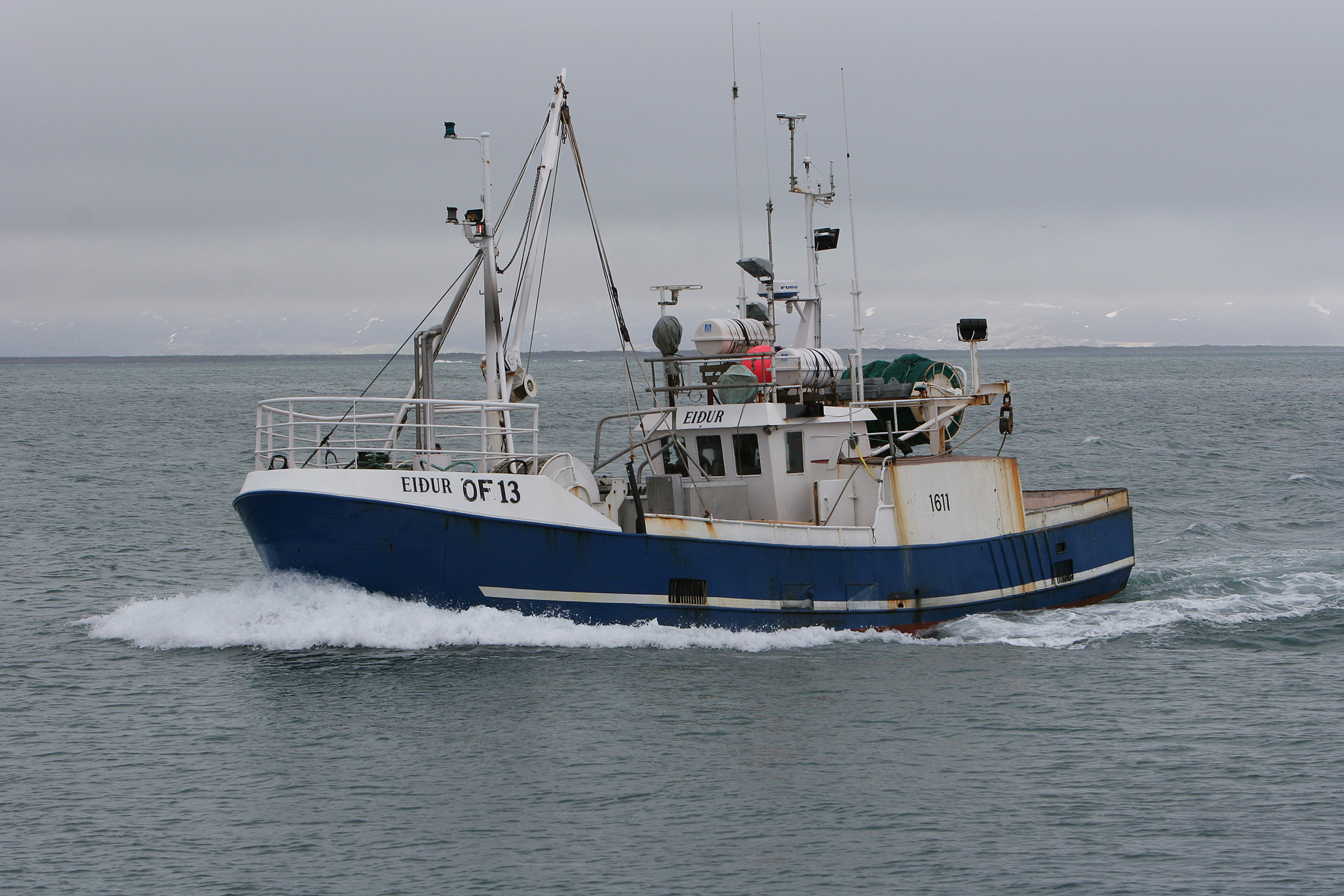 Dragnótabáturinn Eiður ÓF 13 kemur hér til hafnar á Húsavík vorið 2009 en upphaflega hét hann Valur RE 7.