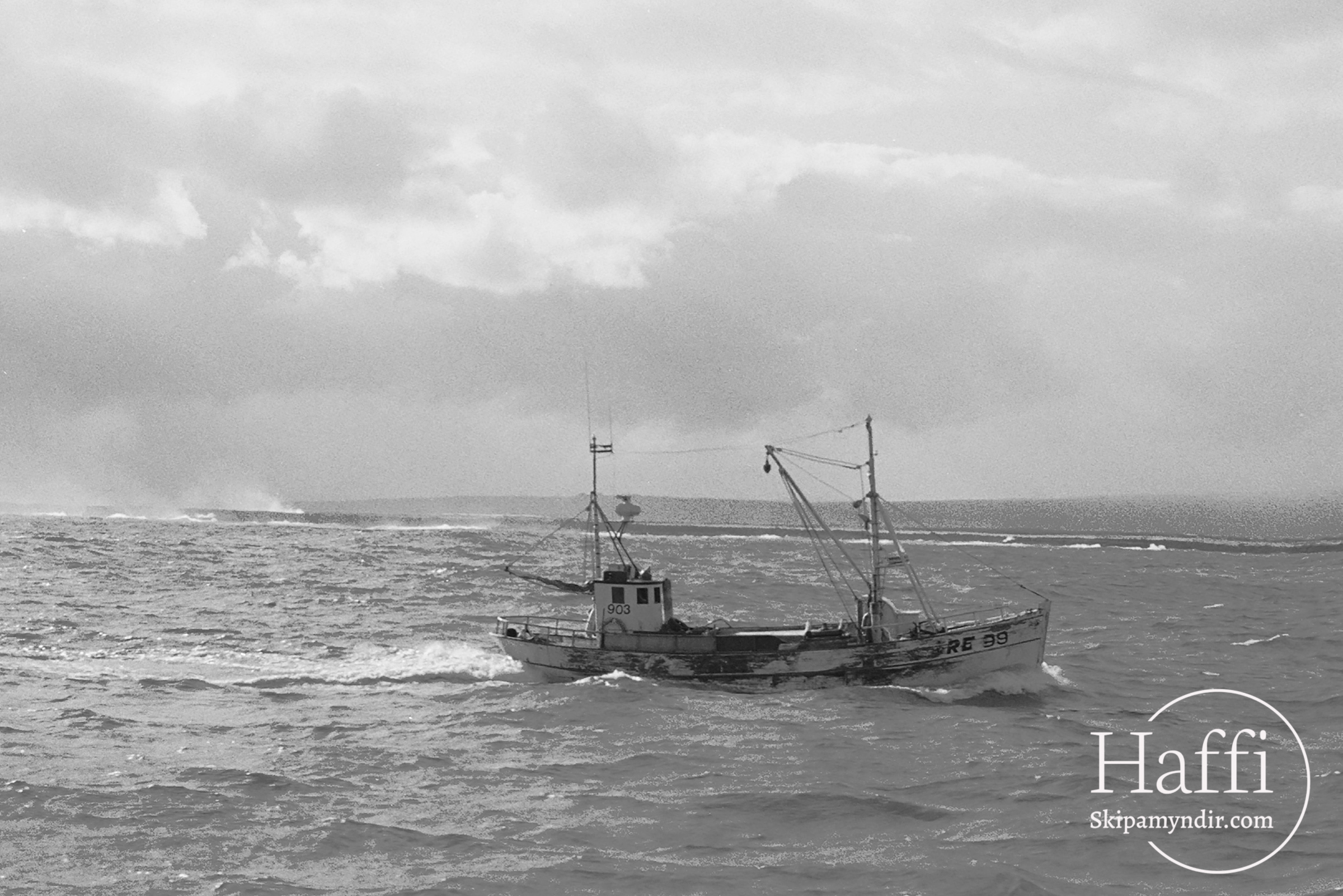 Vísir RE 39 sést hér á landleið til Þorlákshafnar vorið 1982 en Hreiðar Olgeirsson skipstjóri á Kristbjörgu ÞH 44 tók myndina.