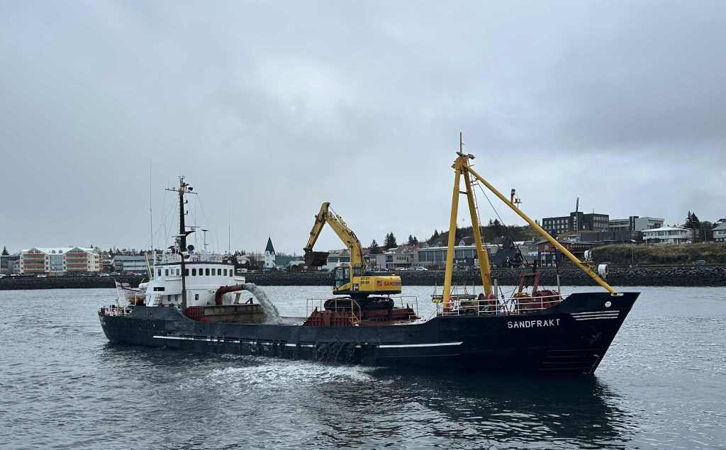Færeyska dýpkunarskipið Sandfrakt hefur undanfarna daga verið að dýpka smábátahöfnina í Hafnarfirði.