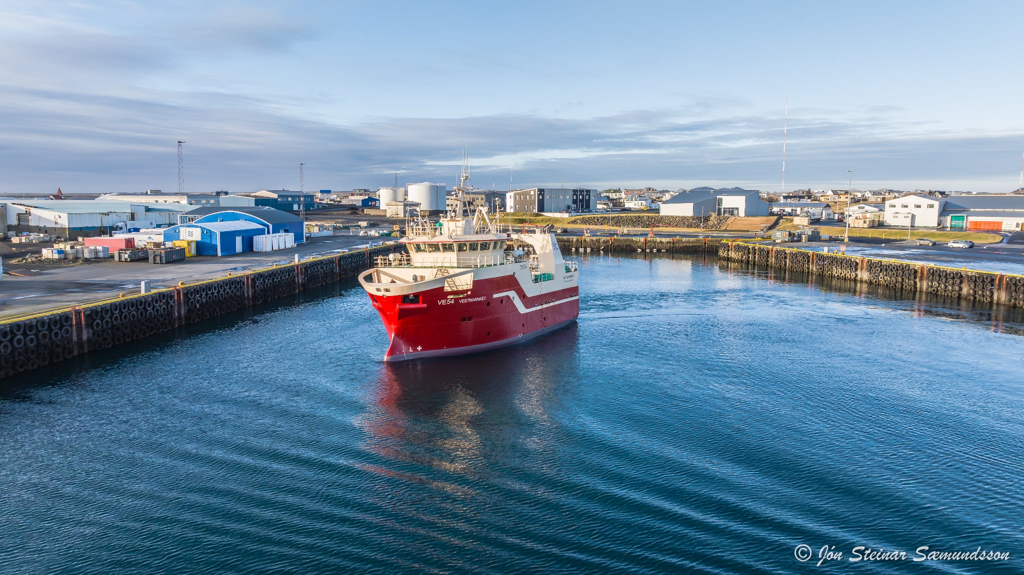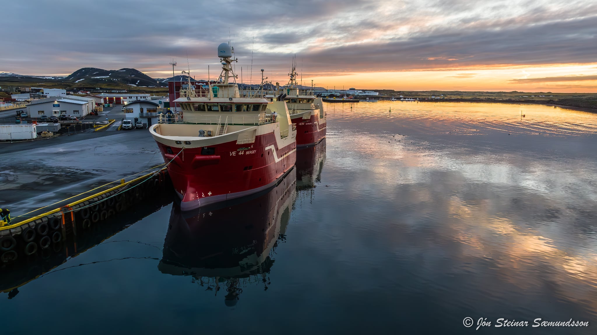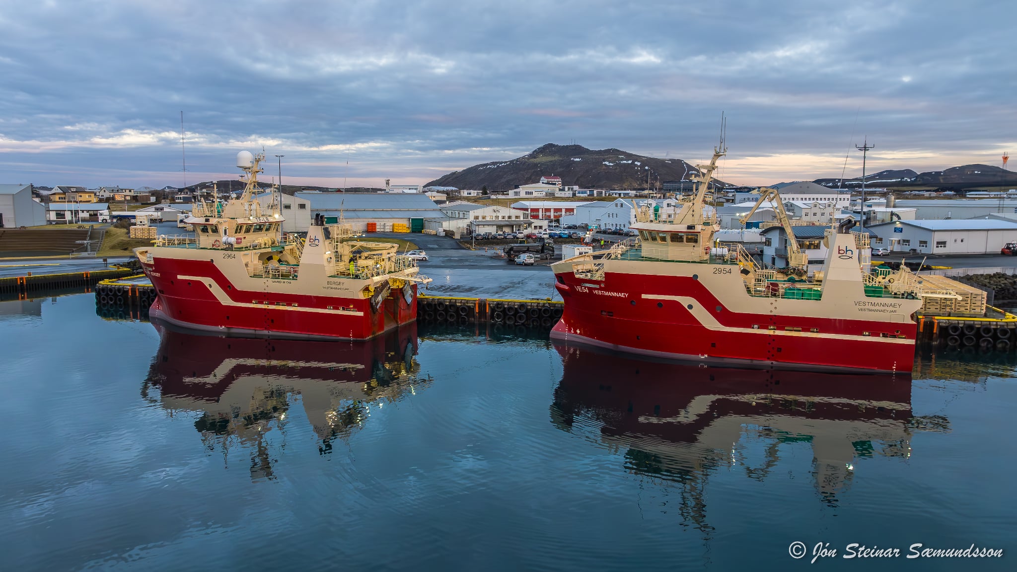 Systurnar Vestmannaey og Bergey komu til löndunar í Grindavík í bítið í gærmorgun. Þær voru kallaðar inn þar sem vantaði hráefni í vinnsluna hjá Vísi.