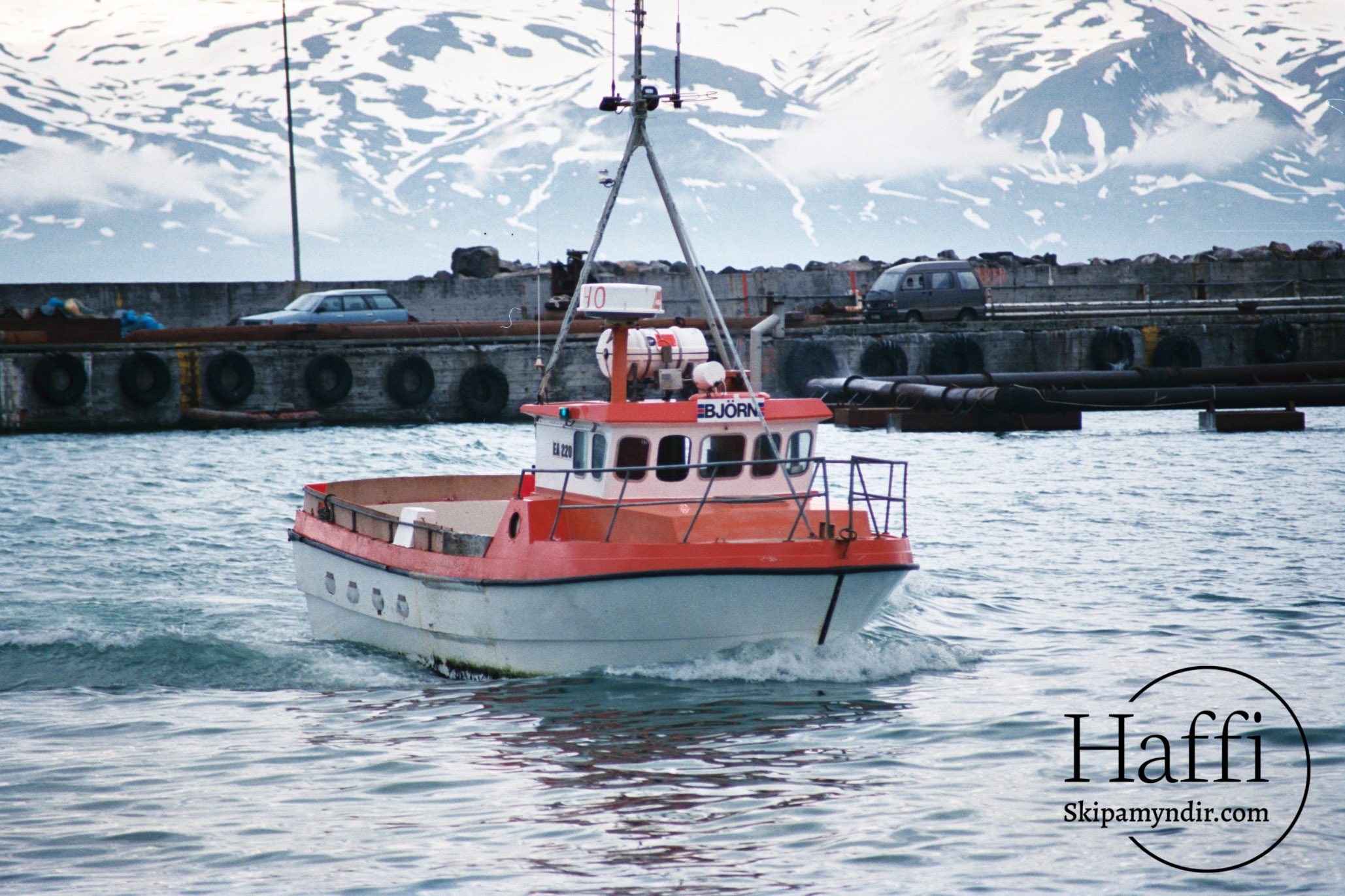 Björn EA 220 úr Grímsey kemur hér að landi á Húsavík um árið en þar átti báturinn eftir að verða gerður út um árabil.