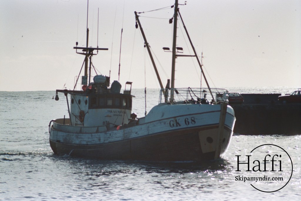 Hraunsvík GK 68 kemur hér að landi í Grindavík um árið en hún hét upphaflega Akurey SF 52 og var smíðuð í Danmörku 1956.