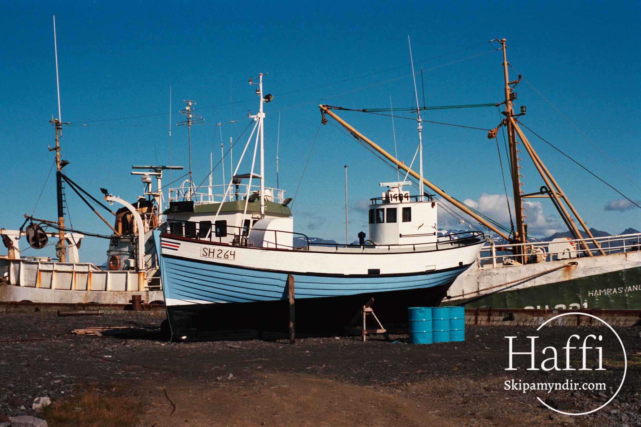 Hér gefur að líta Báru SH 264 upp á landi á Rifi sumarið 1986 ef minni mitt bregst mér ekki.