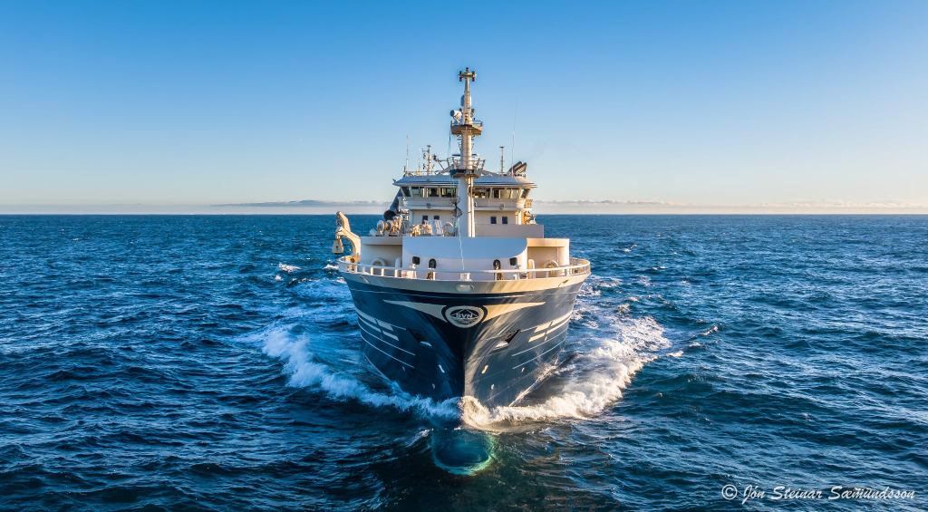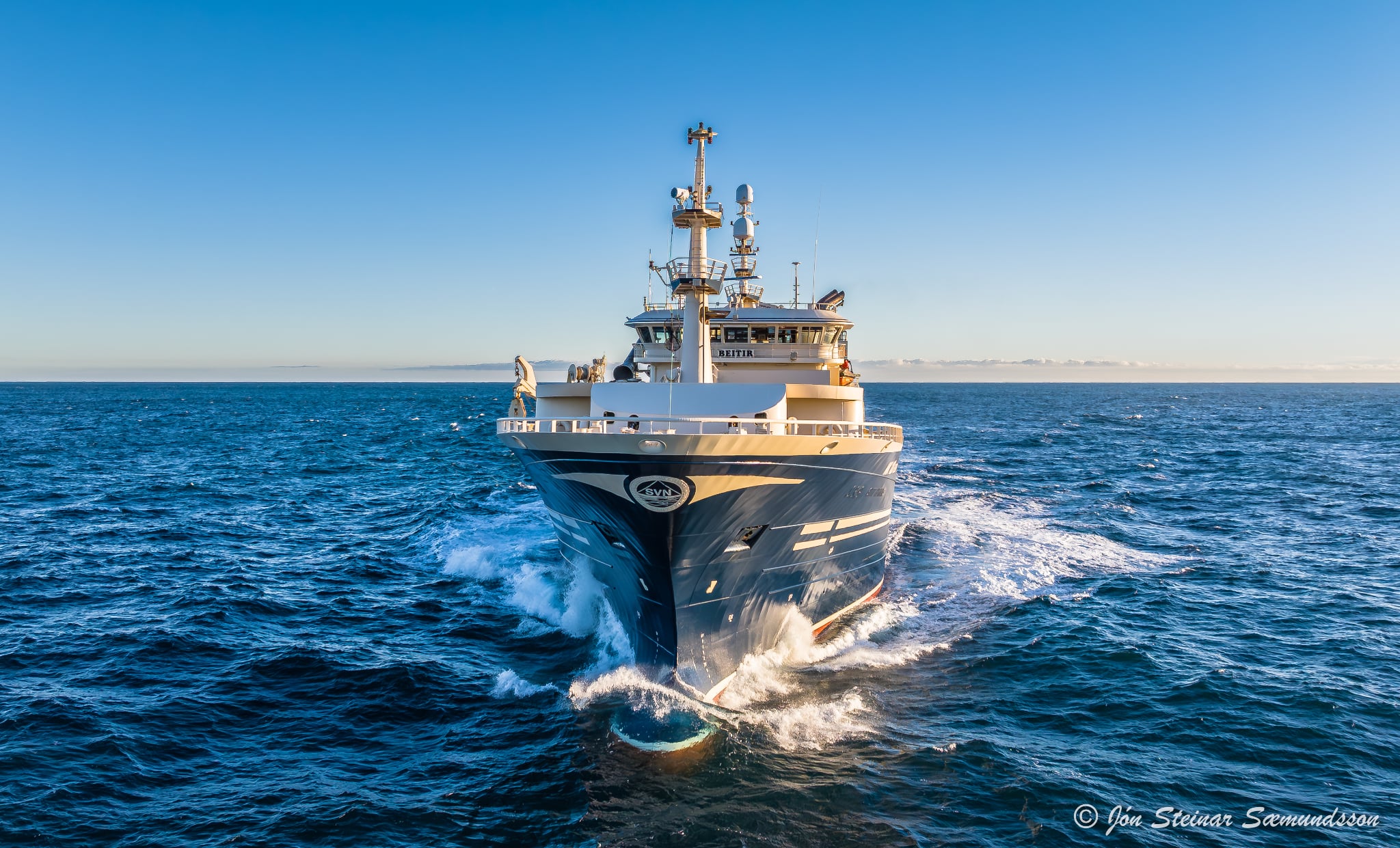 Jón Steinar sendi drónann sinn um sjö kílómetra á haf út í dag til að mynda Beiti NK 123 þar sem hann sigldi fulla ferð í gegnum Reykjanesröstina áleiðis á síladarmiðin fyrir vestan land.