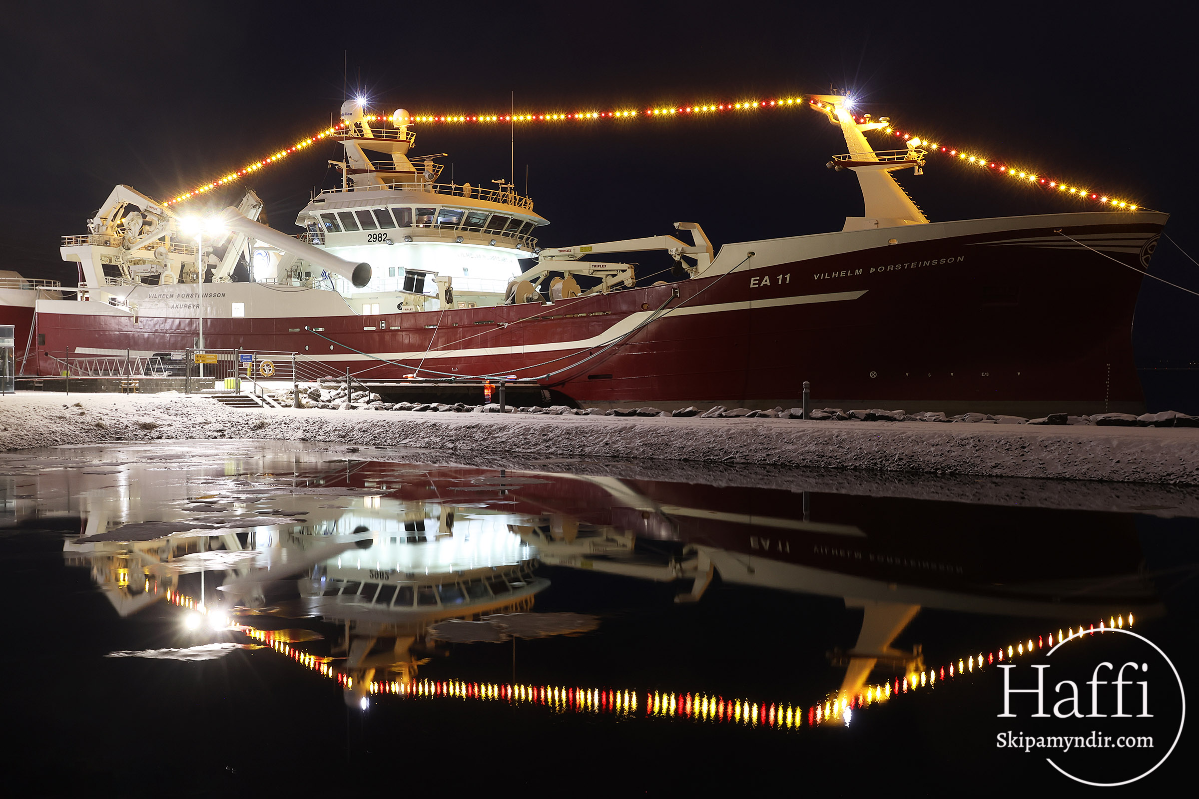 Hér gefur að líta Samherjaskipið Vilhelm Þorsteinsson EA 11 við bryggju í heimahöfn sinni Akureyri.