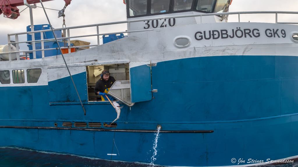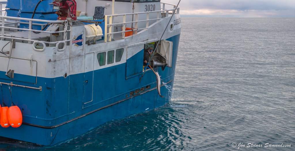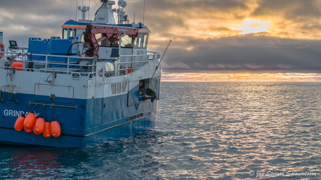 Jón Steinar tók þessar myndir í gær en þær sýna línubátinn Guðbjörgu GK 9 draga línuna undan Selatöngum austan Grindavíkur.