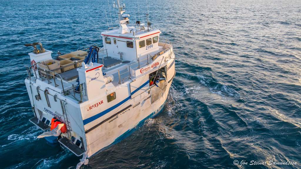 Jón Steinar tók þessar myndir í dag en þær sýna Dúdda Gísla GK 48 draga línuna rétt vestan Grindavíkur.