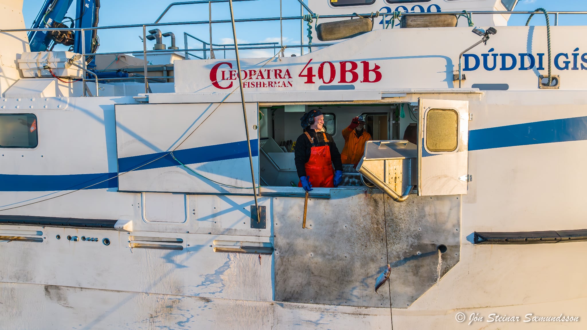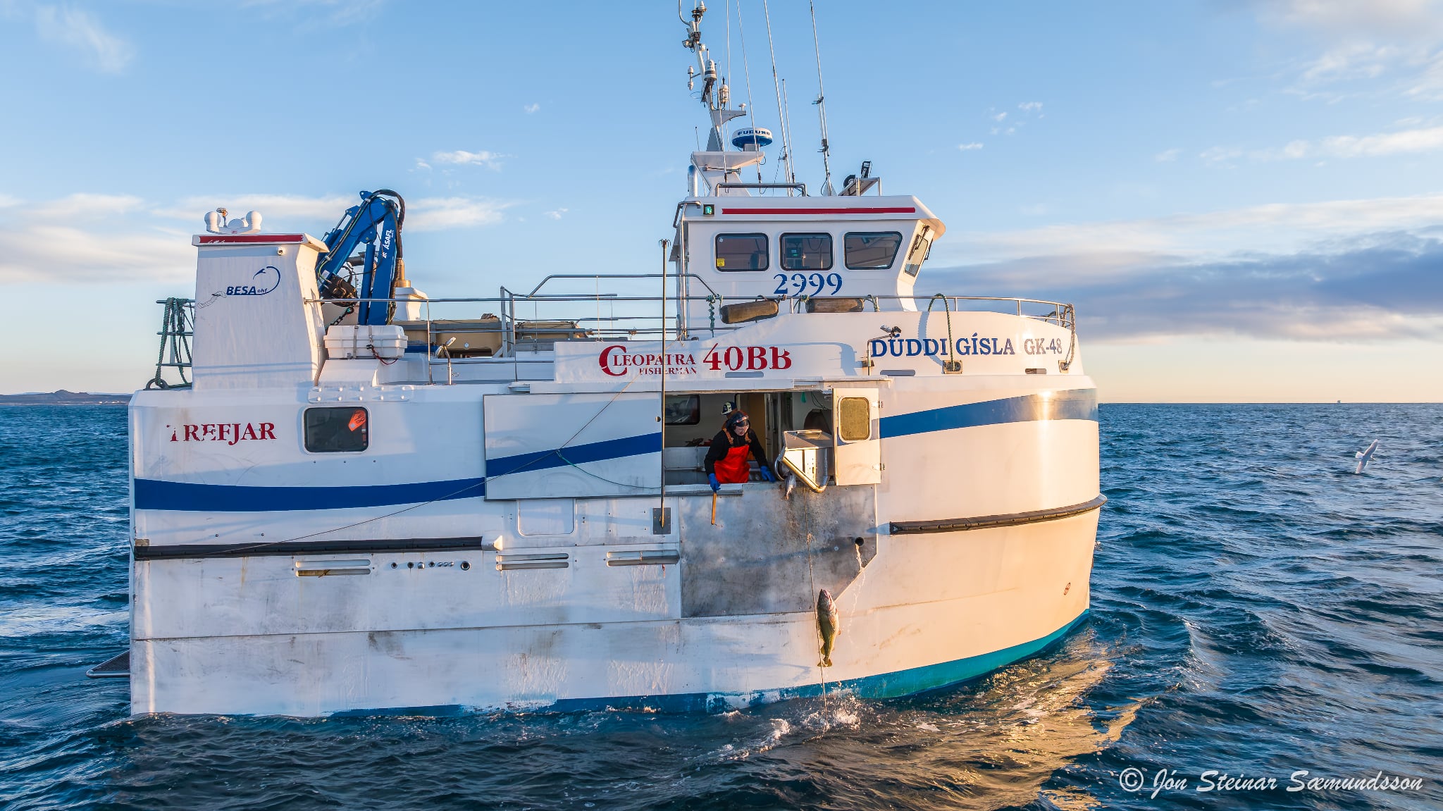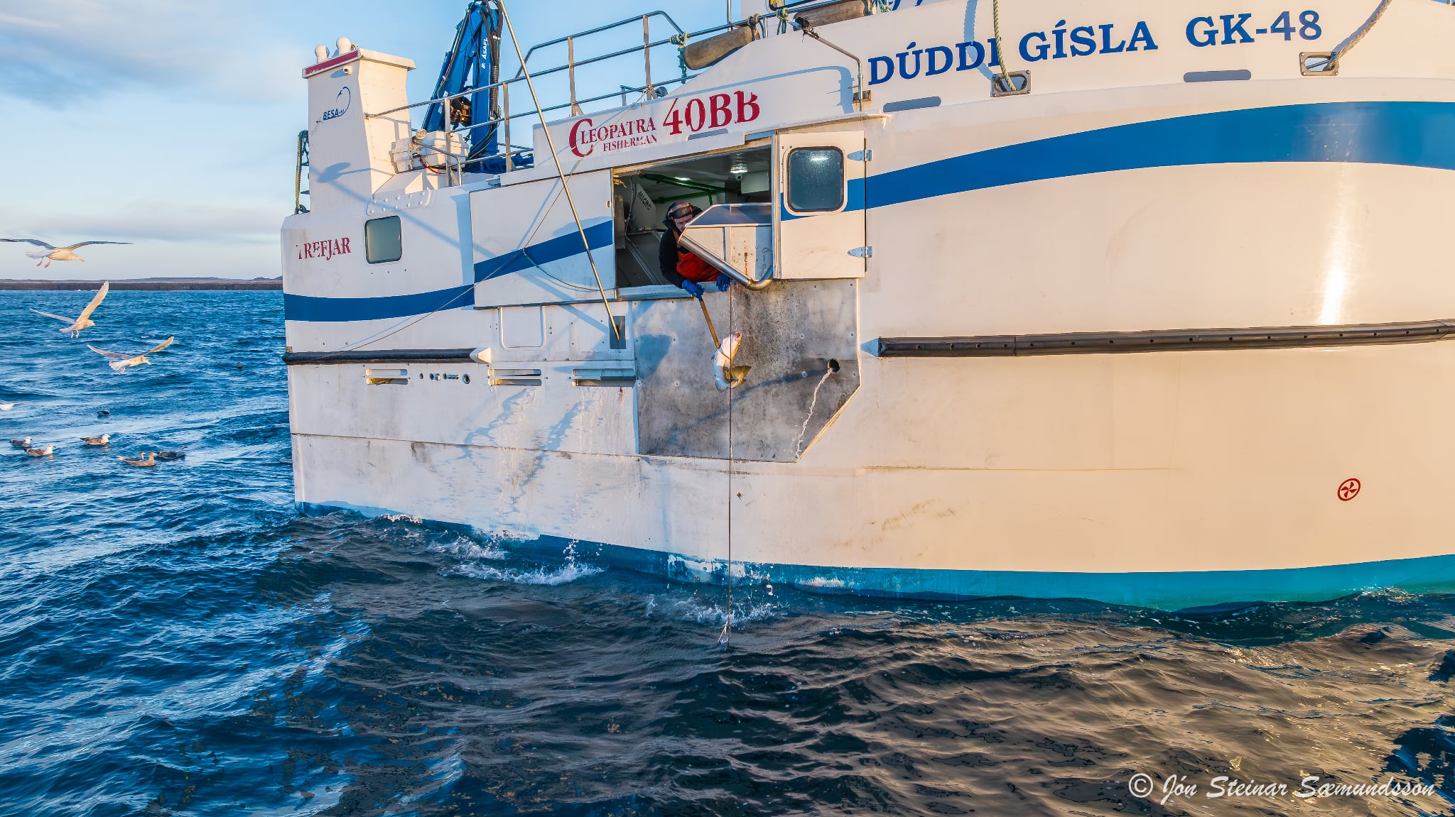 Jón Steinar tók þessar myndir í dag en þær sýna Dúdda Gísla GK 48 draga línuna rétt vestan Grindavíkur.