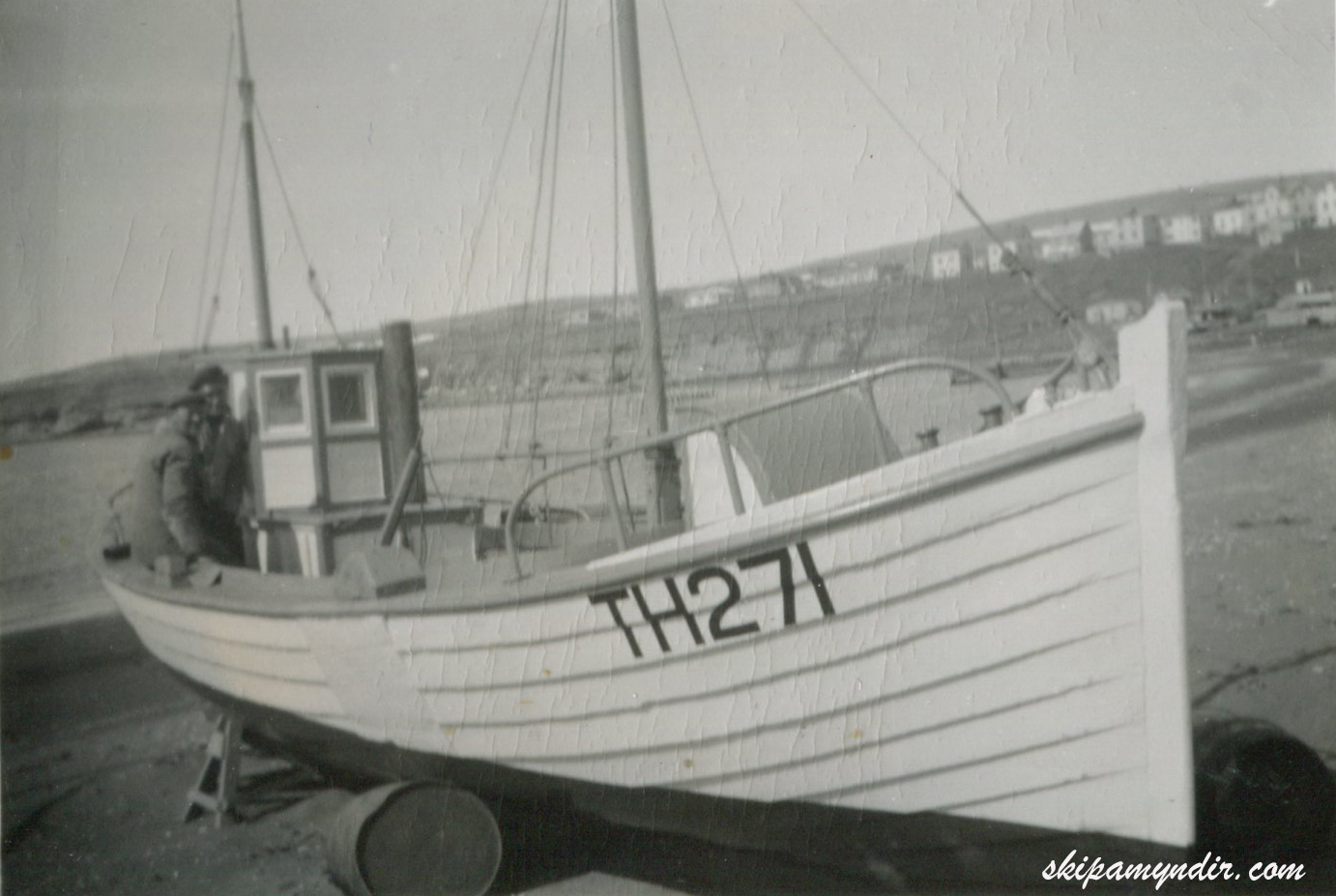 Hér gefur að líta Sæfara TH 271 í fjörunni framan við hafnarstéttina á Húsavík en bátinn, sem síðar varð ÞH 271, lét Héðinn Maríusson smíða fyrir sig í Hafnarfirði árið 1962.