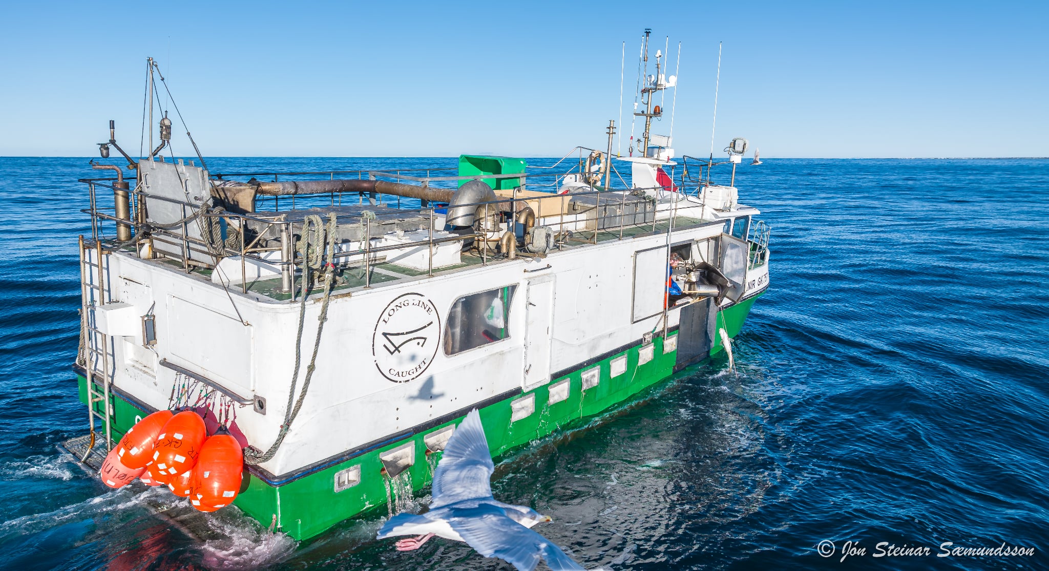Það er óhætt að segja að kallarnir hafi verið að mokfiska því eftir búið var að draga línu af ellefu rekkum voru komin rúm tuttugu tonn í bátinn og uppistaðan boltaþorskur. Þeir höfðu lagt tólf rekka af línu og einn var skilinn eftir í sjó eftir þegar farið var til hafnar í Sandgerði að landa.