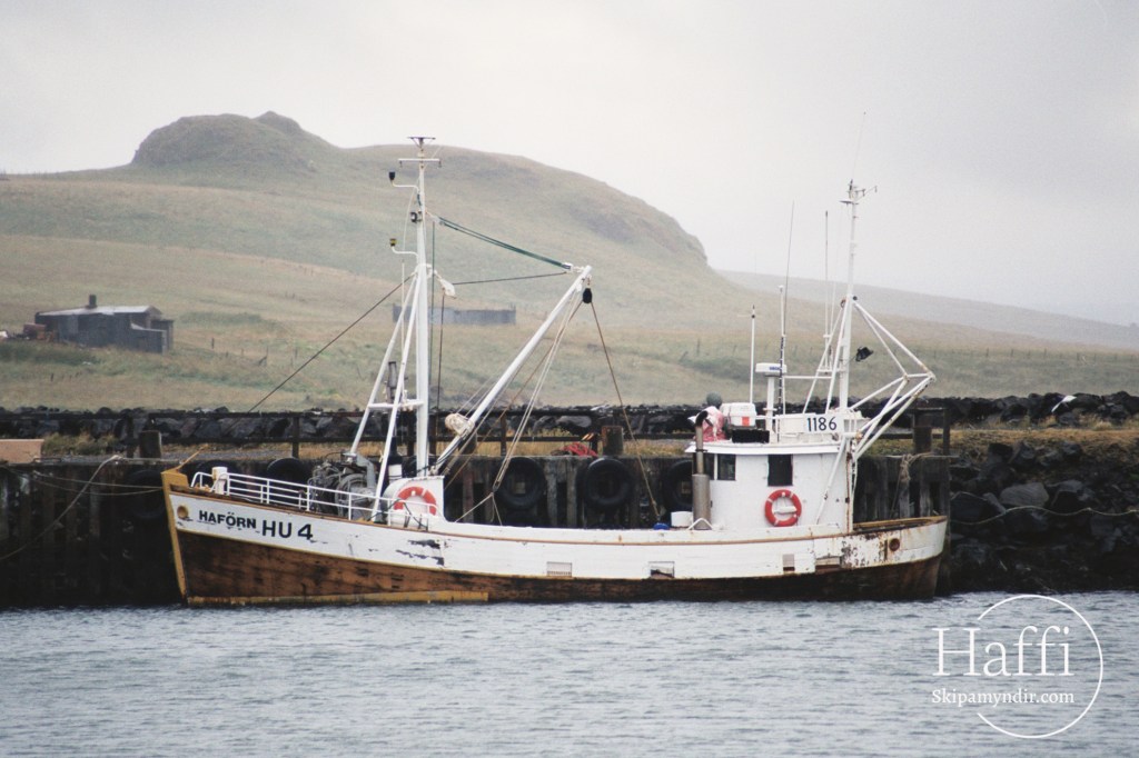 Haförn HU 4 liggur hér við bryggju á Hvammstanga um árið en upphaflega hét báturinn Bliki EA 12 smíðaður í Slippstöðinni á Akureyri árið 1971.