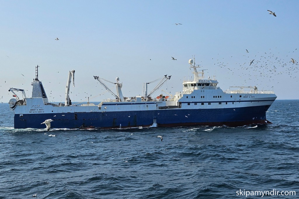 Guðvarður Jónsson sendi mér þessar myndir af Ómanska togararnum Jawhart Al Wusta í morgun en þar um borð er skipstjóri frændi minn Sigurgeir Pétursson.