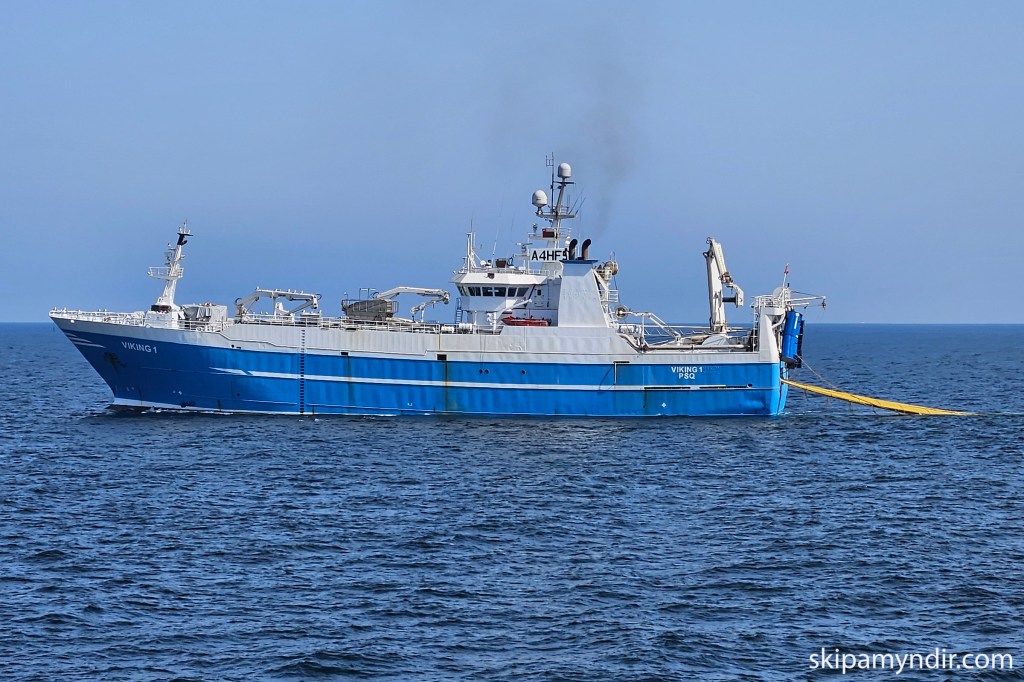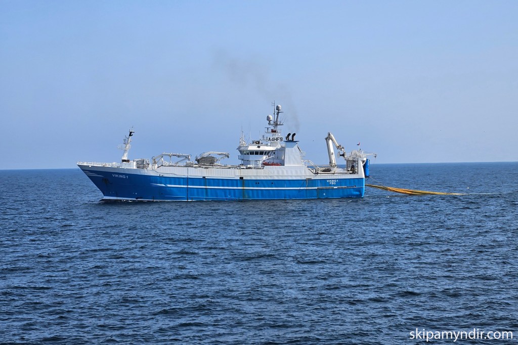 Nóta- og togskipið Viking 1 er á þessum myndum Guðvarðs Jónssonar að veiðum við Óman en eins og glöggir menn sjá er þetta fyrrum Hákon EA 148.