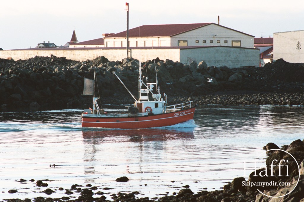 Vörðufell GK 205 kemur hér til hafnar í Grindavík um árið sem sennilega var 1987.