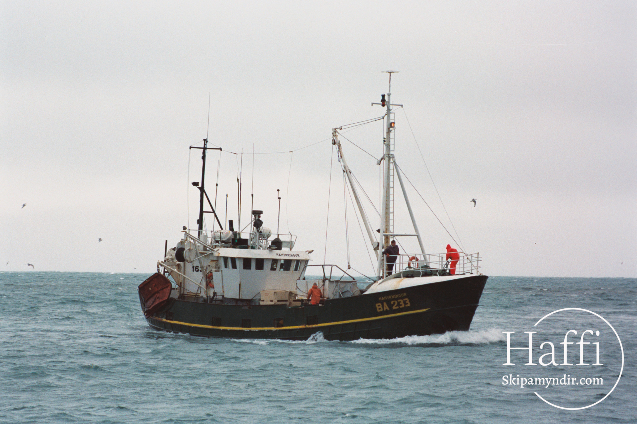 Rækjubáturinn Háhyrningur BA 233 kemur hér að landi á Húsavík um árið en hann bar þetta nafn árin 1997 – 2000.